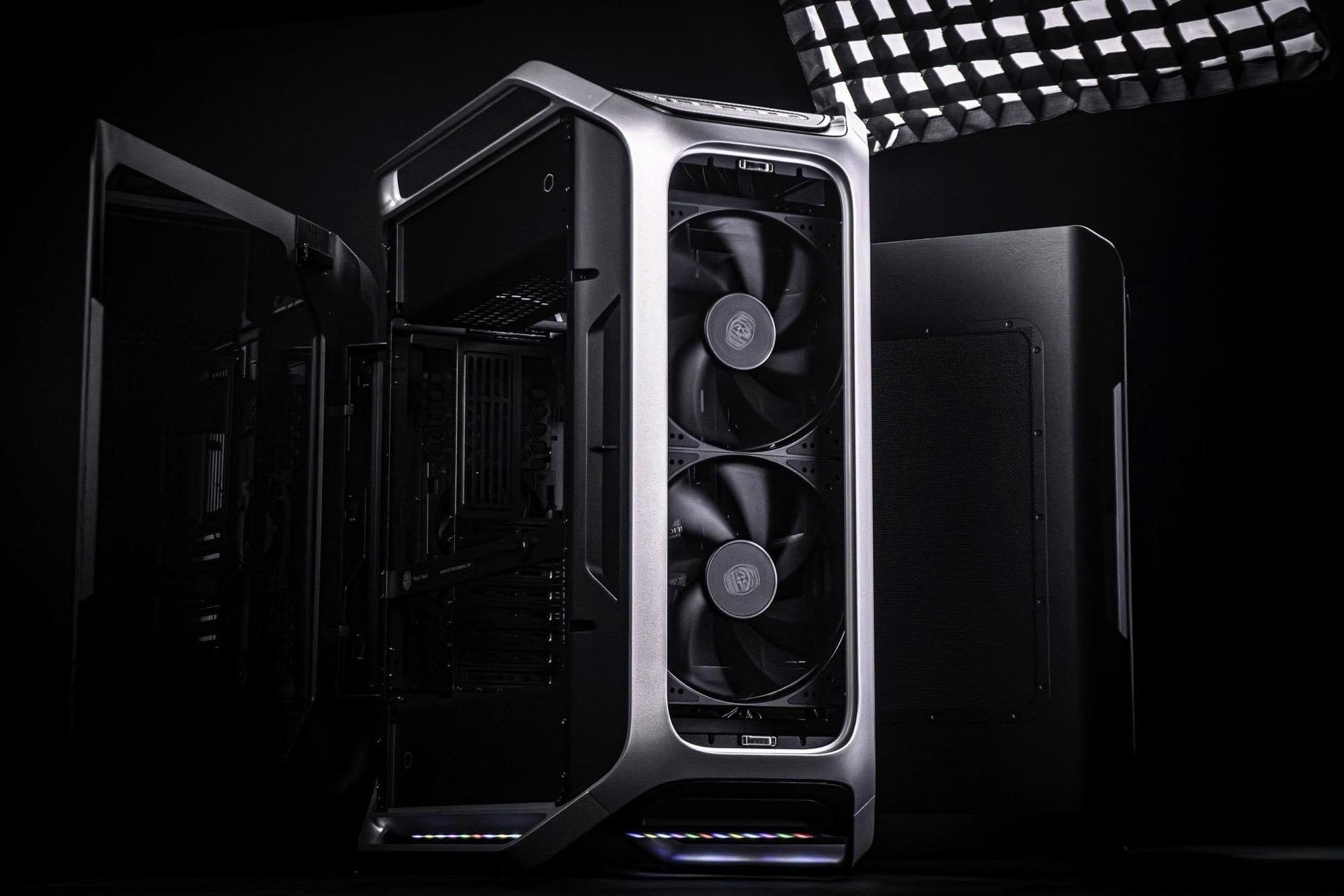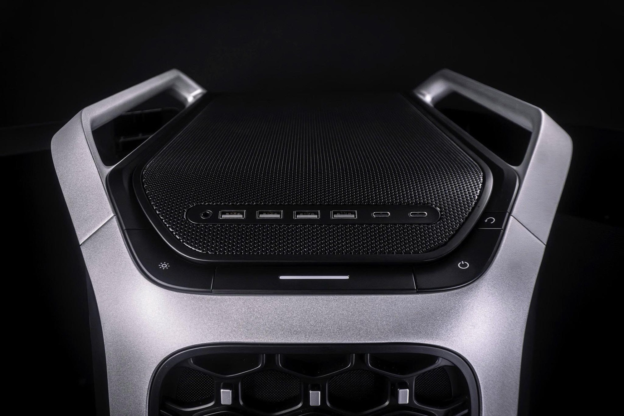 LED-remsor på undersidan ger indirekt belysning, som kan styras via en särskild knapp på ovansidan av chassit. Precis bredvid knappen finns fyra USB-A-portar, två USB-C-portar och ett 3,5 mm hörlursuttag. Mikrofonen i ett anslutet headset kan stängas av med hjälp av en knapp på chassit. Cooler Master har ännu inte bekräftat alla specifikationer; produktsidan togs offline kort efter lanseringen men förväntas komma tillbaka snart.