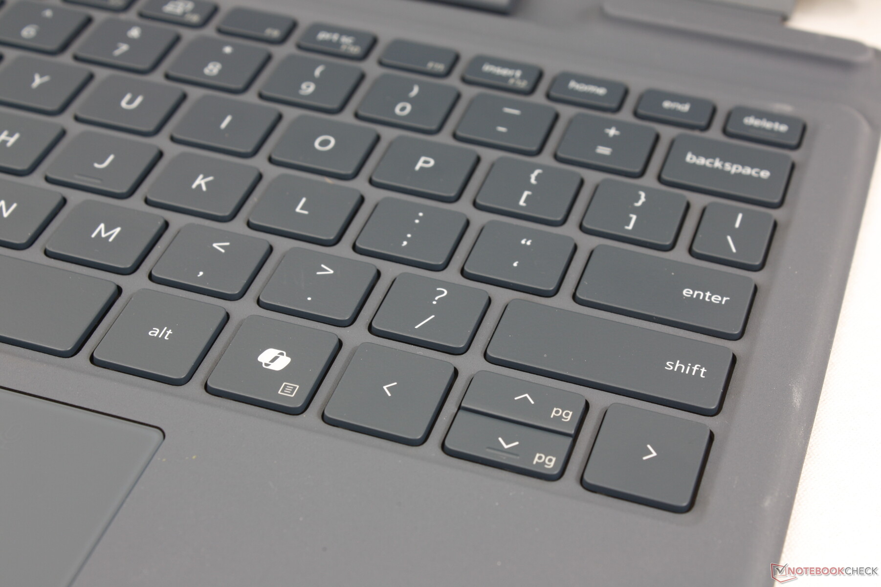 Dells klickplatta är något mindre än klickplattan för Surface Pro-serien (11,5 x 6 cm jämfört med 11,4 x 7,5 cm). Den kortare höjden är tyvärr märkbar eftersom vertikala markörrörelser känns mer trånga än horisontella rörelser, särskilt med tanke på skärmens höga 3:2-aspektförhållande. Glasytan är i övrigt slät och fastnar nästan inte ens när man glider i långsammare hastigheter medan återkopplingen när man trycker ner för att klicka förblir ytlig och på den mjuka sidan.