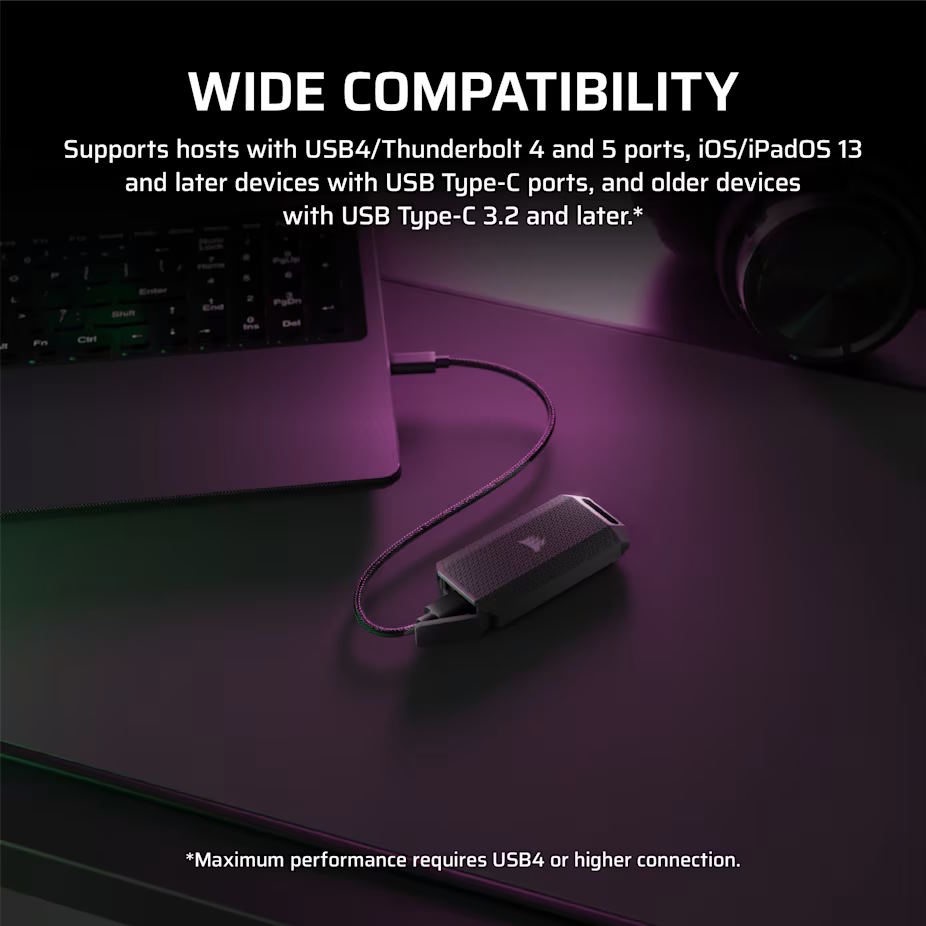 Oavsett vilken modell som väljs utlovas höga dataöverföringshastigheter. Den ansluts via USB 4 med upp till 40 GBit/s, med en maximal läshastighet på 4.000 MByte/s och en maximal skrivhastighet på 3.600 MByte/s. Naturligtvis kan dessa datahastigheter endast uppnås under optimala förhållanden och därmed med sekventiella dataöverföringar. Dessutom måste hela dataöverföringskedjan stödja så höga hastigheter. När man t.ex. säkerhetskopierar data från en hårddisk blir detta omedelbart en flaskhals.