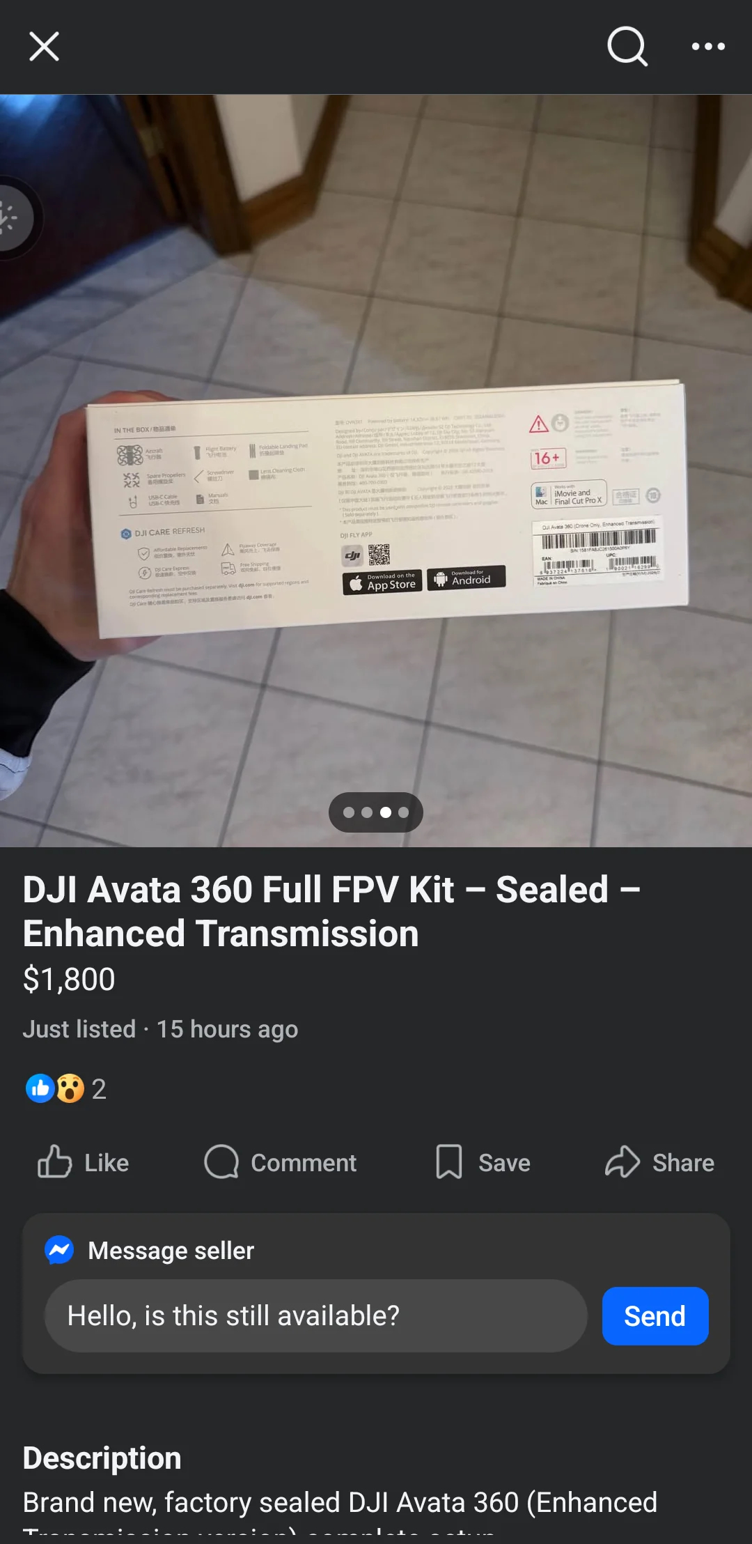 Å andra sidan har en Redditor sett någon som säljer Avata 360 på Facebook Marketplace. Även om Facebook Marketplace inte visar själva drönaren, bekräftar de bilder som tillhandahålls detaljhandelslådans design som syns i Xdrones Studios bild. För närvarande tror läckare som Jasper Ellens att Avata 360 kommer att debutera nästa månad i Kina. Prissättningen ryktas börja på CNY 2 988 (~ $ 435); en global lansering kan ske i början av april.
