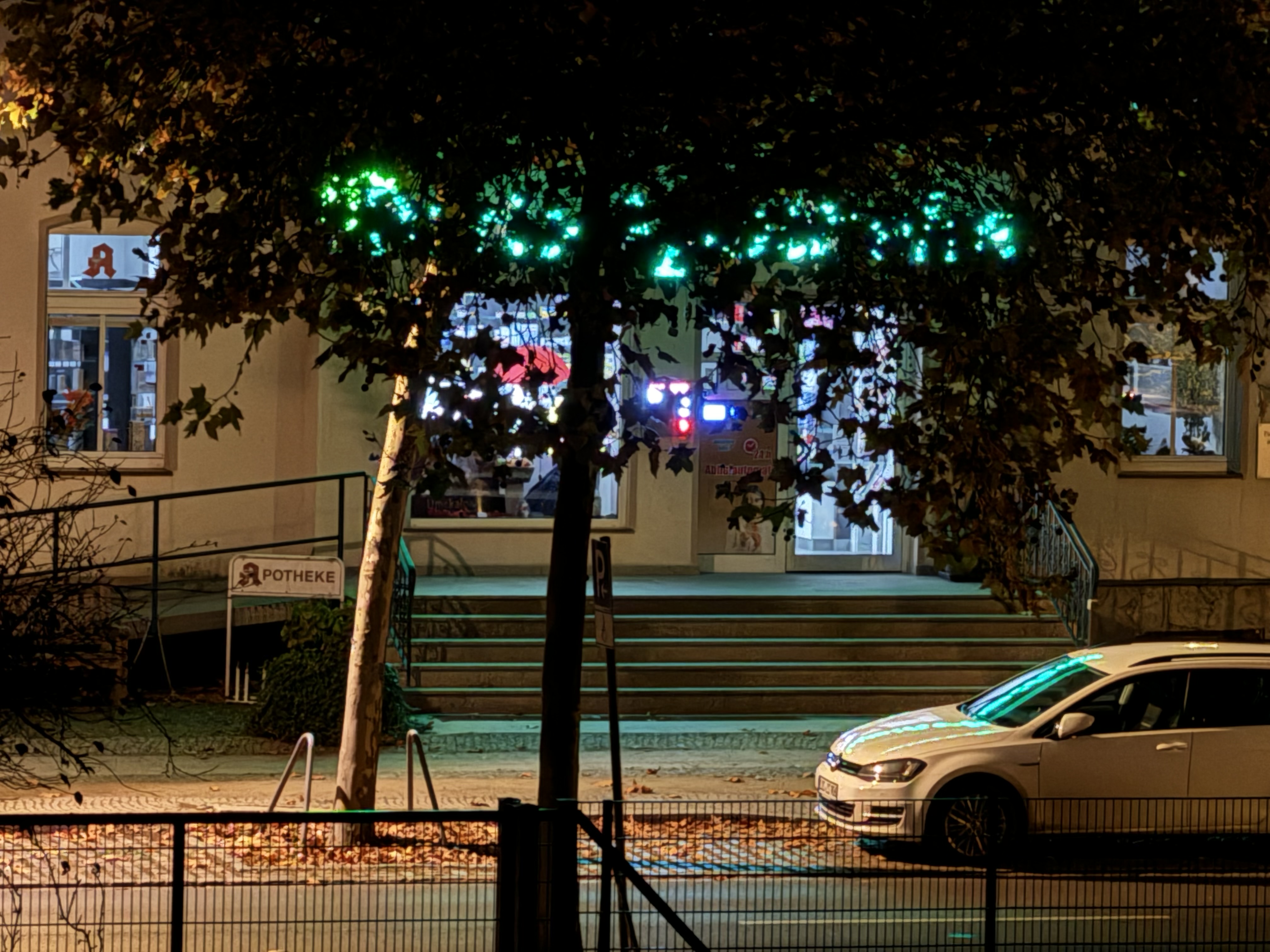 IPhone iPhone 15 Pro Max briljerar på natten. IPhone fångar hemmabilden riktigt bra i svagt ljus, med mycket detaljer. Men med lite mer ljus fångar Pixel 8 Pro saker med ännu mer detaljer än iPhone 15 Pro Max. De två smartphones är inte så olika. Mindre brister, som överexponerade bilddelar, kan fortfarande ses. Ljuskällor är ibland överexponerade, som med föregångarna, vilket sannolikt beror på den förlängda exponeringstiden, eftersom slutartiderna är betydligt längre än på en Xiaomi 13 Ultra eller Galaxy S23 Ultra.