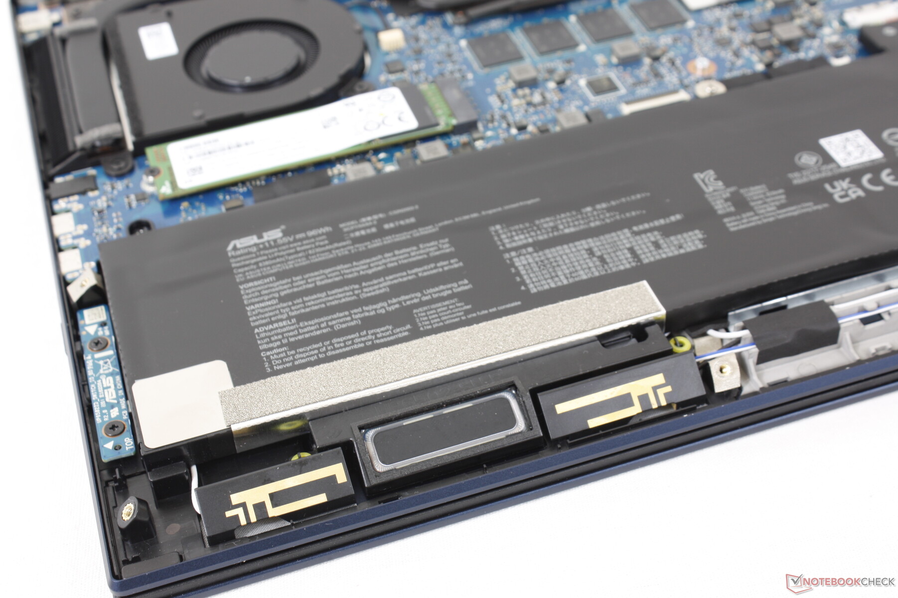 Asus har utrustat modellen med ett större batteripaket än de flesta andra konvertibla datorer, 96 Wh,för att kompensera för den krävande CPU:n och GPU:n. Ägare kan förvänta sig nästan 9,5 timmars surfning i verkligheten, vilket är jämförbartmedHP Envy x360 15 ellerdenäldre ZenBook Flip 15 UX563FD. Modeller somLG Gram 16 2-in-1 ellerDell Inspiron 16 7620 2-in-1 kan fortfarande hålla i flera timmar längre.