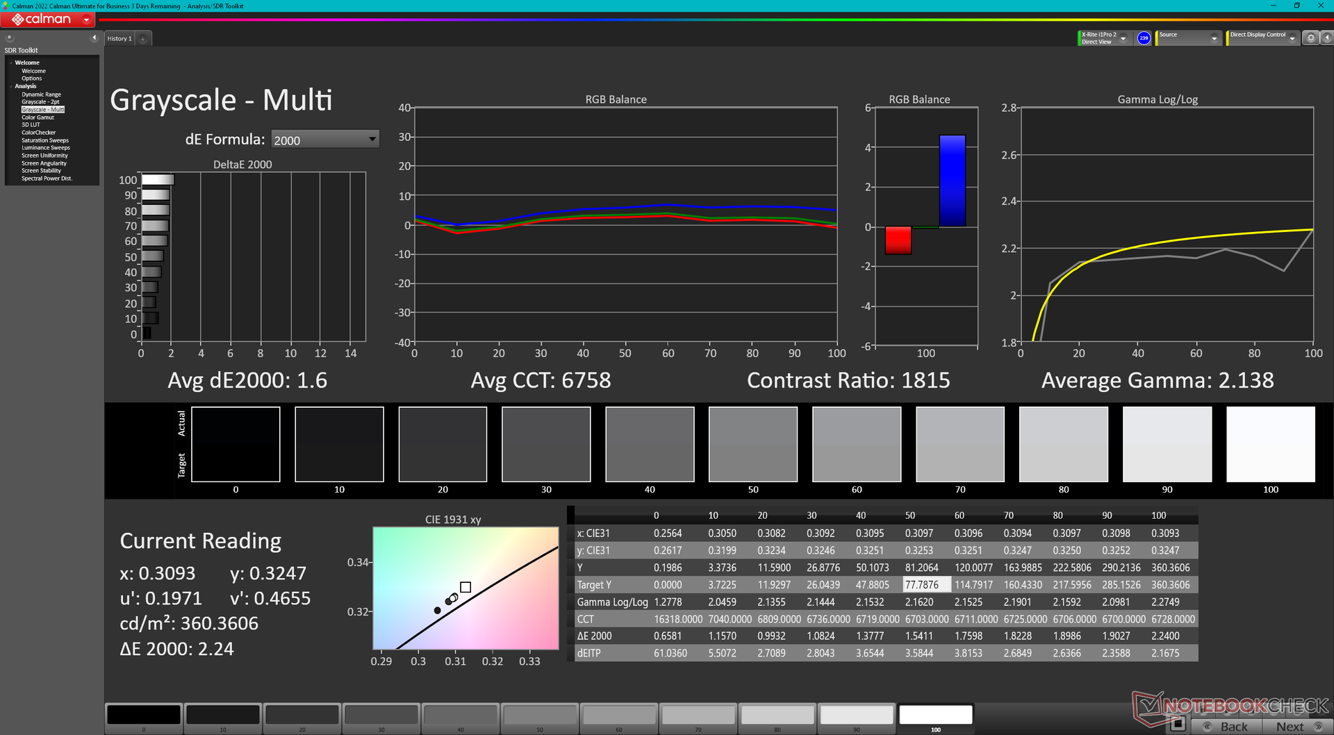 ΔE Greyscale Calman: 2.6 | ∀{0.09-98 Ø5}