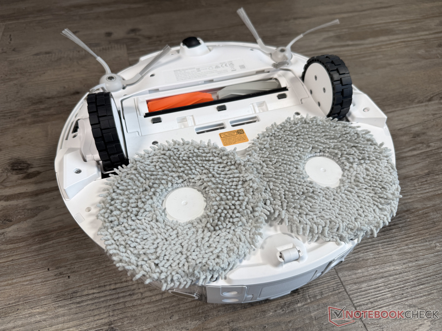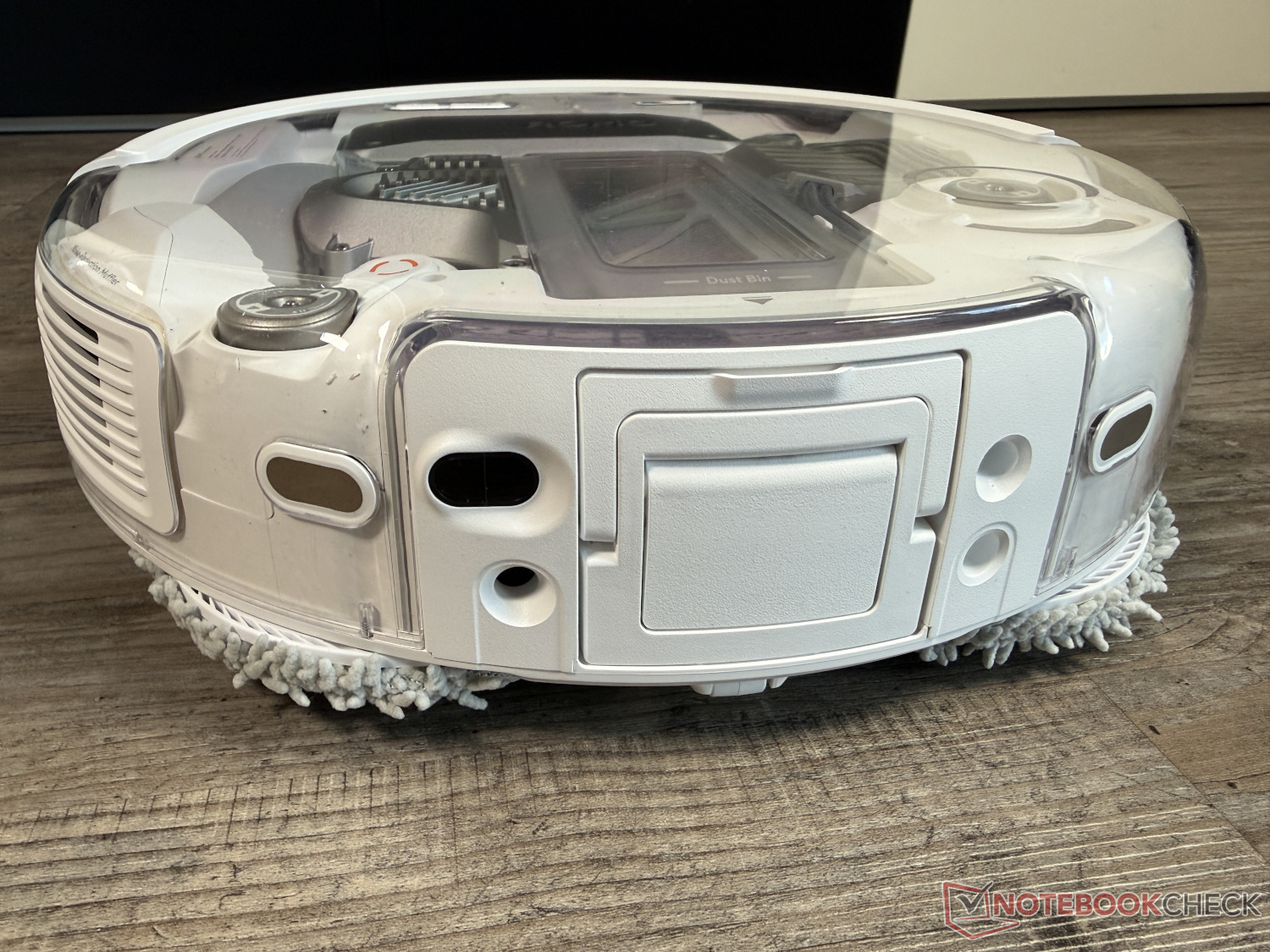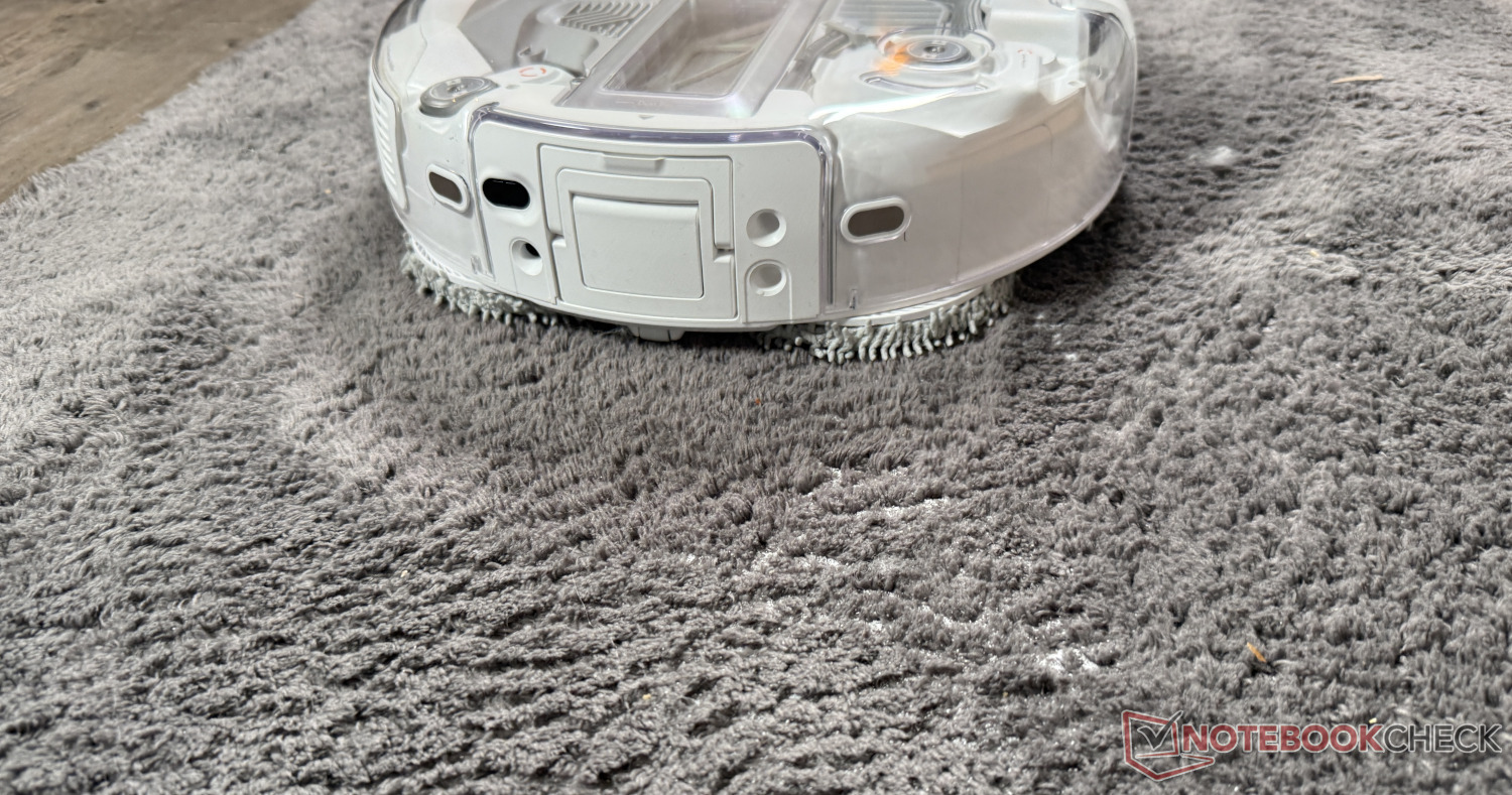 Med 25.000 Pa är sugkraften inte riktigt i nivå med andra flaggskeppsmodeller, men den är fortfarande mycket hög. Tillverkaren kombinerar två sidoborstar med ett brett svepområde, en av dem kan förlängas för rengöring av hörn och kanter. Detta gäller även för en av de två roterande, fluffiga mopparna på robotens baksida, som hålls konstant fuktig av en 164 ml vattentank. Rullborsten är uppdelad i två delar för att förhindra att håret trasslar in sig. Totalt ingår två stycken: en med borstar och gummi för mattor och hårt smutsade golv och en rullborste i gummi som är idealisk för långt hår och djurpäls.