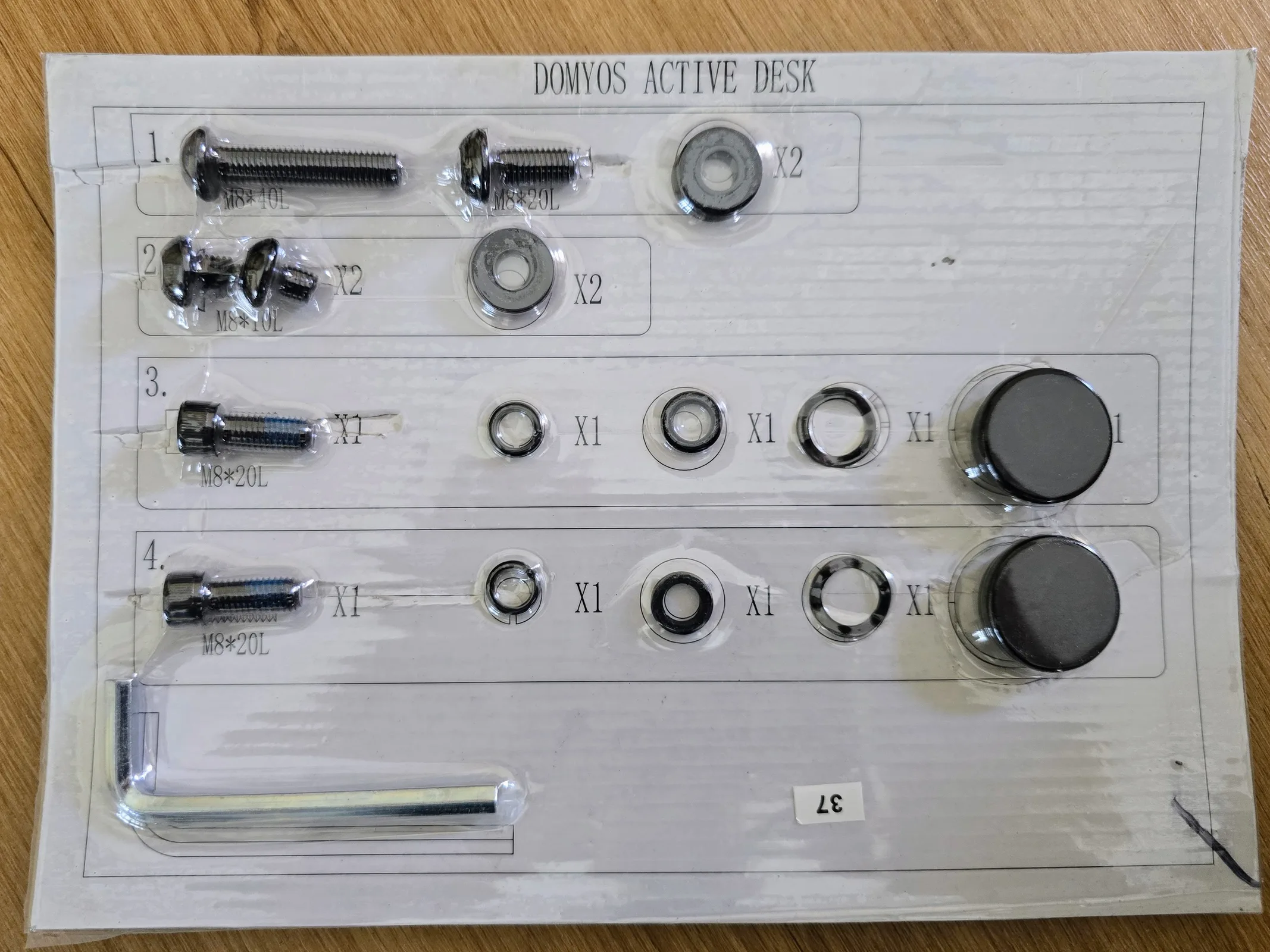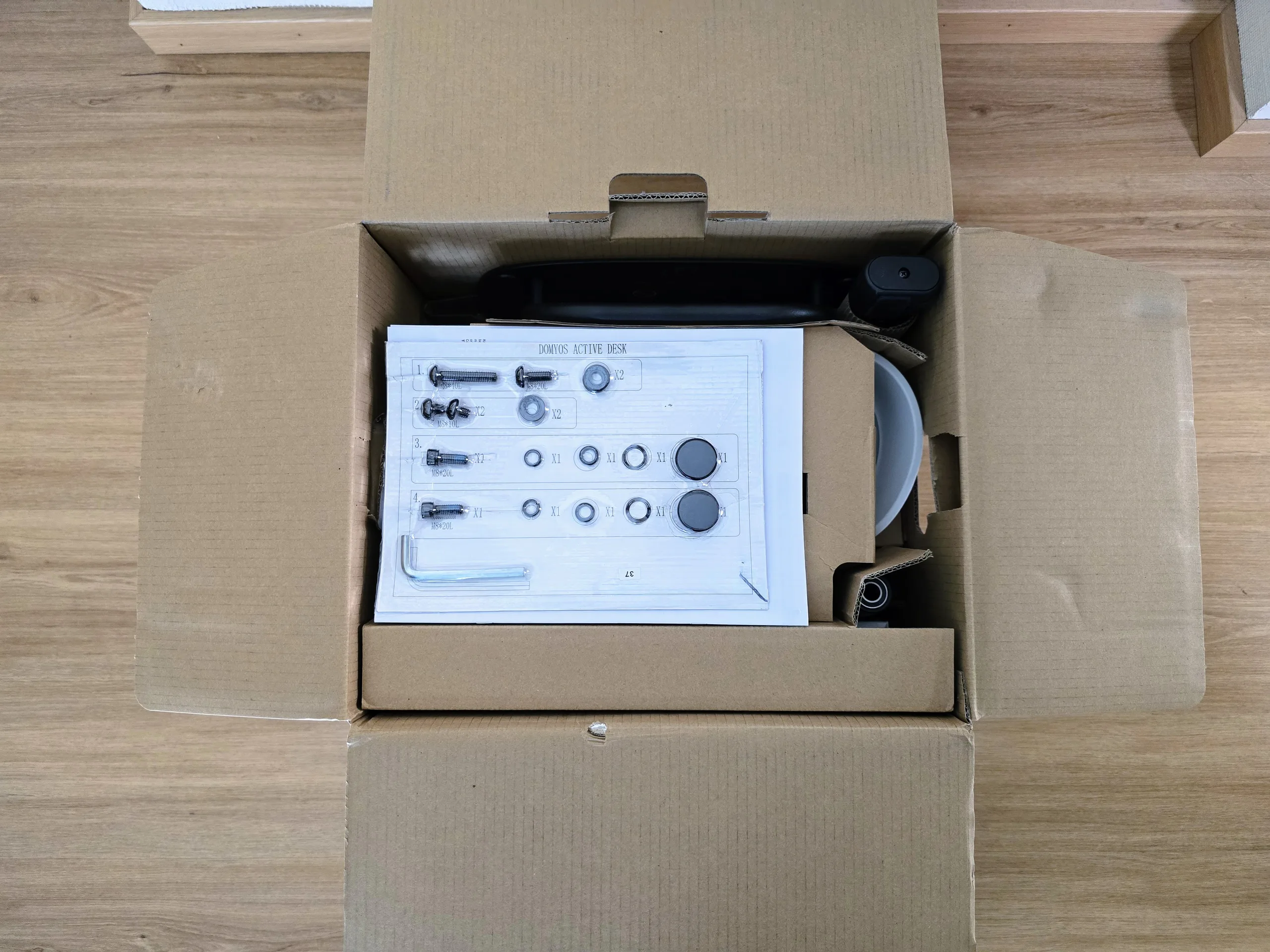 De medföljande instruktionerna är tydliga och väl illustrerade. Alla skruvar och verktyg medföljer och monteringen tar ca 15 minuter. Active Desk behöver inget eluttag, utan den inbyggda displayen drivs med de medföljande batterierna.