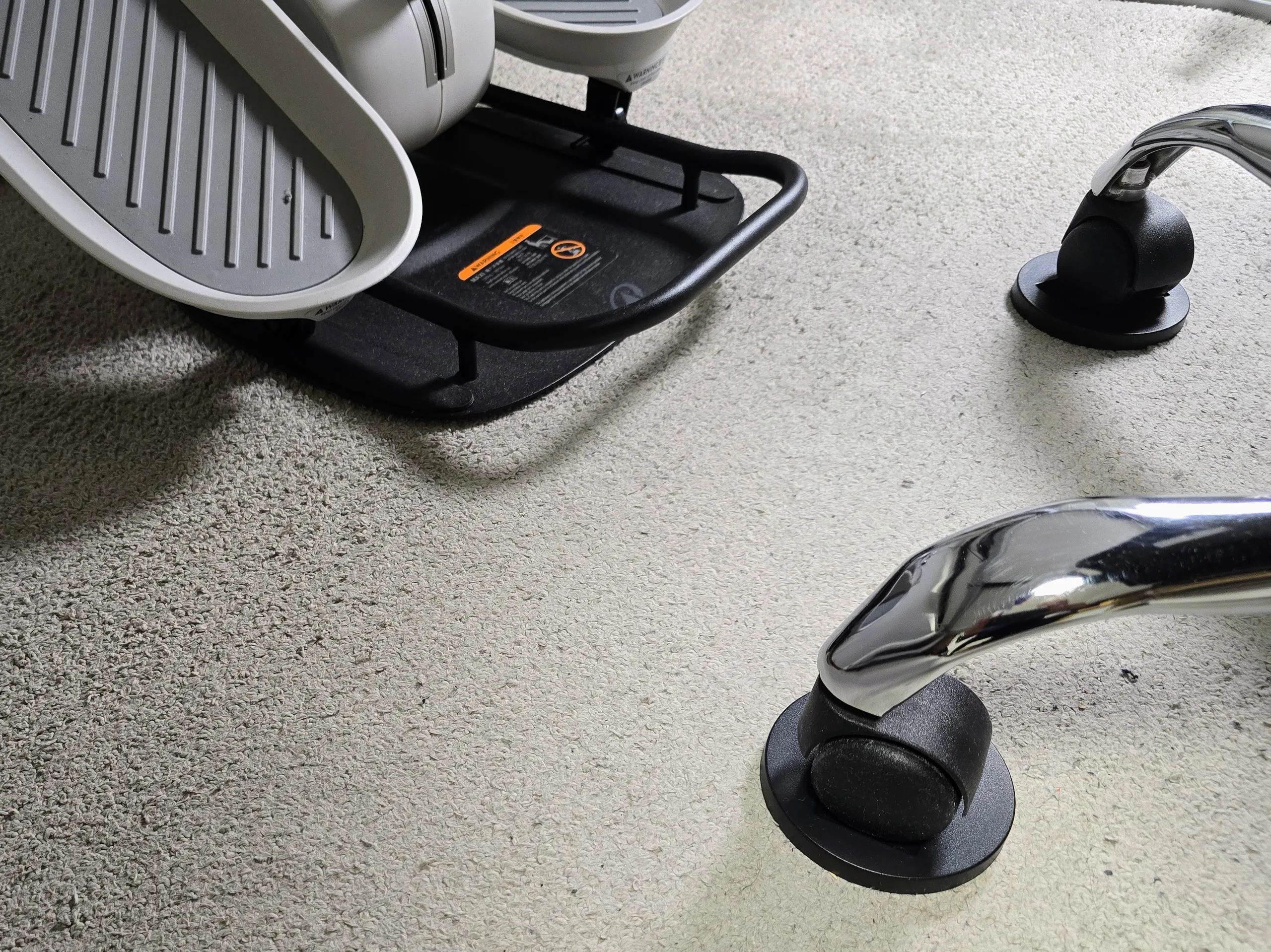 Den största utmaningen med Decathlon Active Desk är inte montering eller användning, utan att få den rätt placerad under ett skrivbord. Tack vare det stora handtaget och de inbyggda hjulen är mini-crosstrainern lätt att flytta. Det verkliga problemet är kontorsstolen: en med hjul tenderar att rulla iväg så snart du börjar trampa.