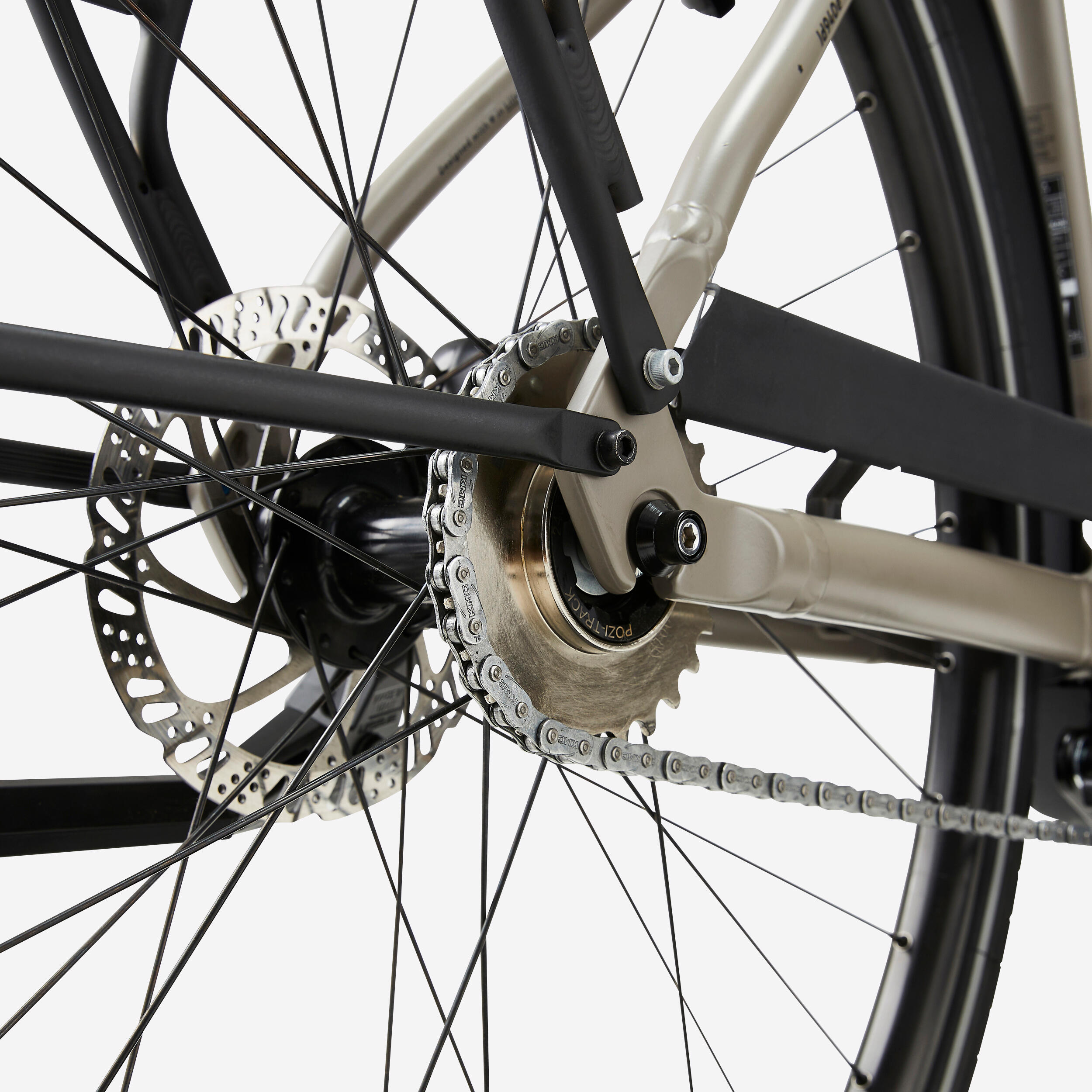 Denna nya Btwin-modell har en Owuru-motor med 250 W effekt (650 W toppeffekt) och 65 Nm vridmoment. Motorn är utrustad med en CVT-växellåda (Continuous Variation Transmission) för automatisk växling, med en pedalkadens som kan justeras mellan 40 och 90 rpm. Batteriet på 694 Wh uppges ge en räckvidd på upp till 130 km i Eco-läge, 74 km i Tour-läge och 64 km i Turbo-läge. Tack vare Bluetooth kan du ansluta cykeln till din smartphone, så att du kan spåra dess plats eller visa resestatistik i Decathlon-appen. Dessutom visas information som återstående batterinivå och tid på cykeln på en integrerad färgskärm med en USB-C-laddningsport.
