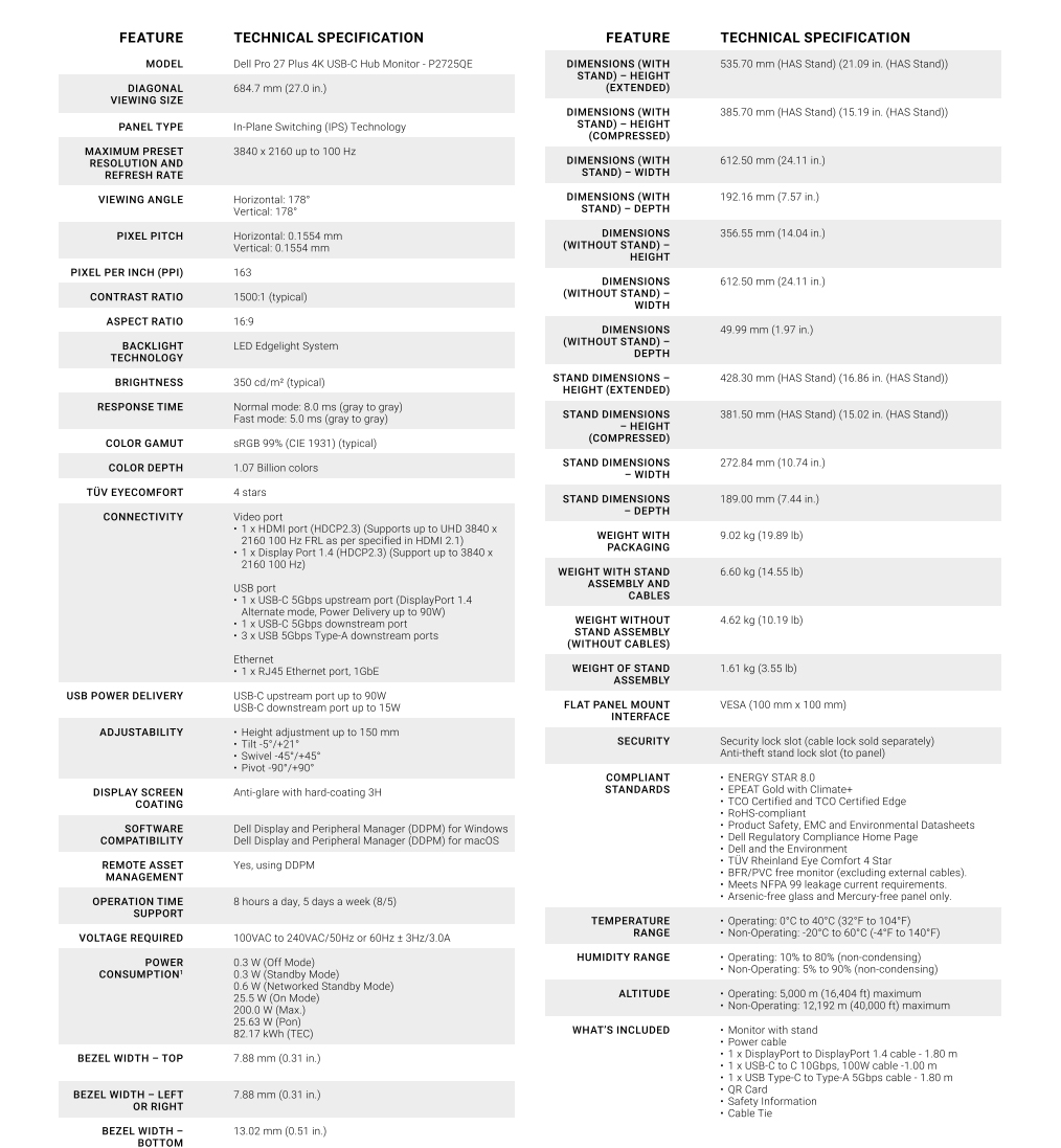 Utöver det har Pro 27 Plus något som företaget kallar Dell Display and Peripheral Manager. Det kan automatisera inställningarna för ljusstyrka och kontrast, ordna fönster i förinställda partitioner och göra mer för att förbättra produktiviteten. Det finns inget ord om pris och tillgänglighet ännu, men om du vill lära dig mer om bildskärmen, kolla in de fullständiga specifikationerna som bifogas nedan.