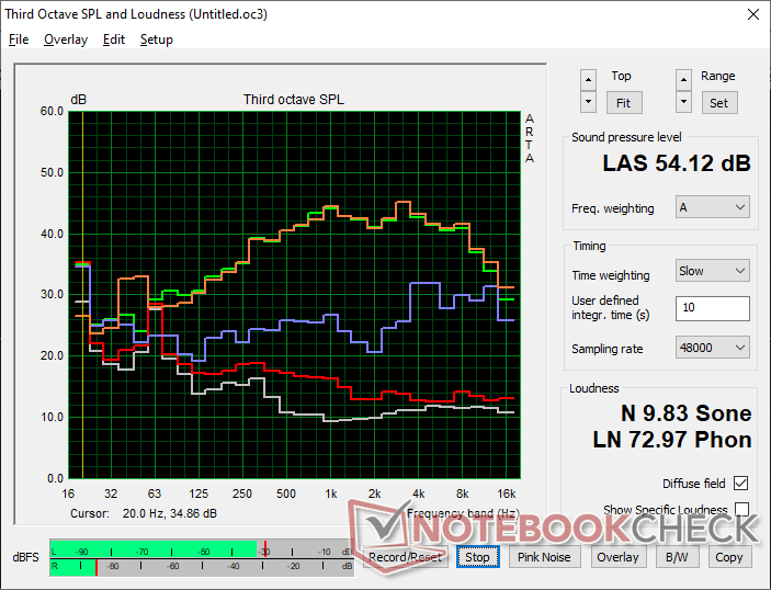 (+) | det totala ljudet är linjärt (4.6% skillnad mot median)