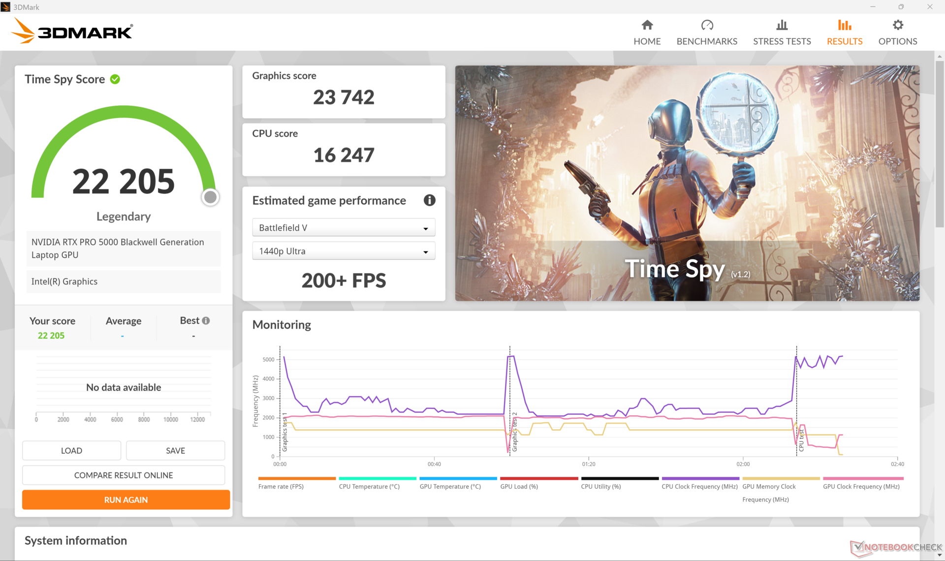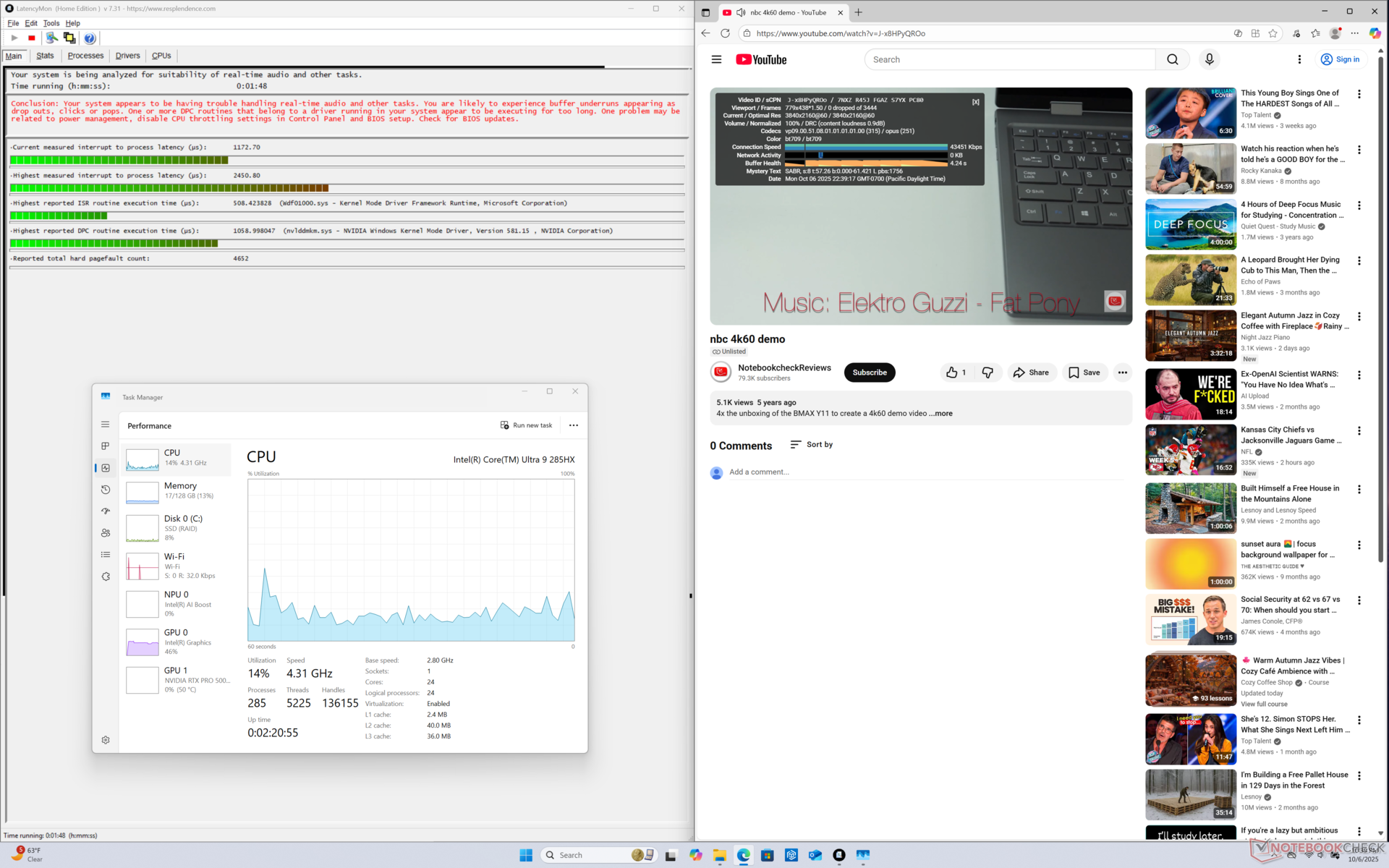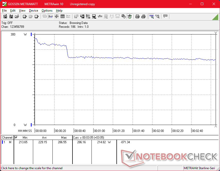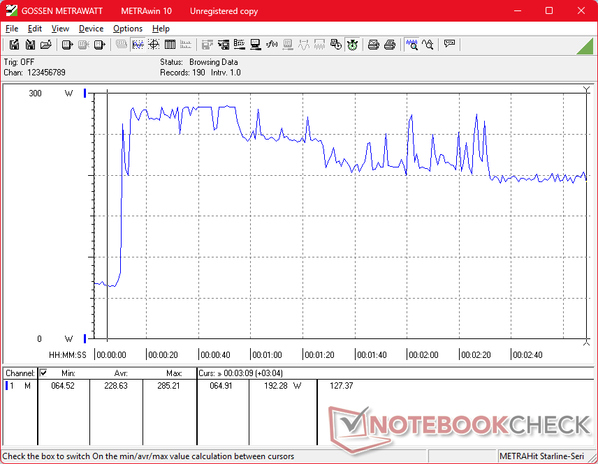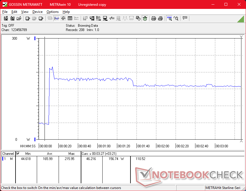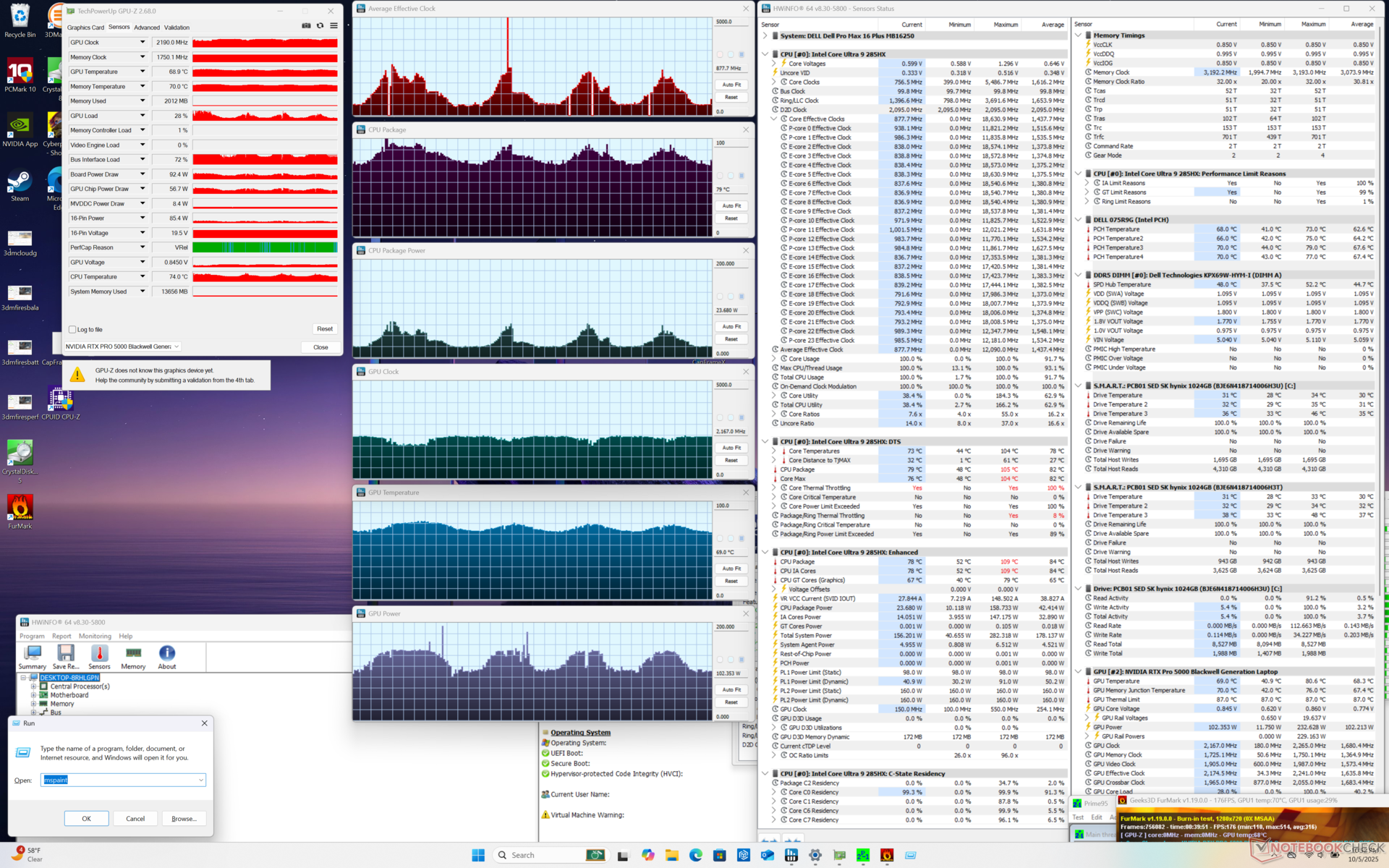 Nackdelarna är i allmänhet små. Strömförbrukningen är nu högre än tidigare med upp till 280 W jämfört med 240 W eller mindre på Precision 7680. Pro Max 16 Plus är visserligen mer kraftfull, men den är också mer krävande för kylningslösningen och har överlag kortare batteritid. CPU-temperaturen i synnerhet kan nå 95 till 105 C när den belastas, vilket påverkar systemets Turbo Boost-prestanda. Samtidigt tenderar GPU:n att stabiliseras på 125 W trots att den är klassad för upp till 175 W. Det är därför troligt att samma CPU och GPU kan köras snabbare på tjockare eller större formfaktorer som 18-tums Pro Max 18 Plus. Pro Max 16 Plus-systemet är ändå en av de snabbaste och mest praktiska arbetsstationerna som finns tillgängliga trots eventuella begränsningar i kylningslösningen.