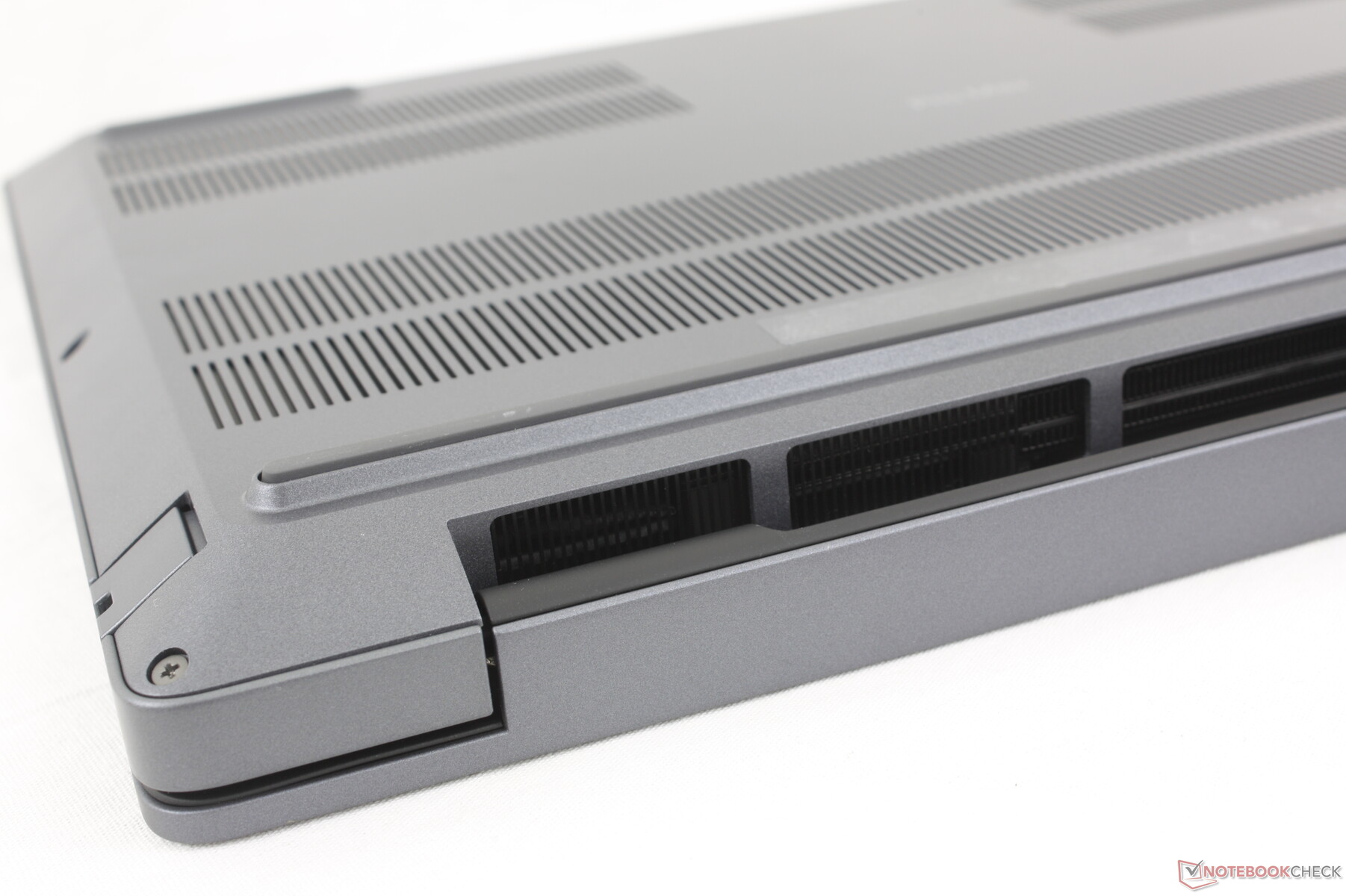 Bottenpanelen kräver endast en stjärnskruvmejsel för att avlägsnas för enkel åtkomst till interndelarna. CAMM2-modulen, två M.2 2280 SSD-kortplatser, WLAN-modulen och grafikkortet (DGFF) är alla löstagbara.