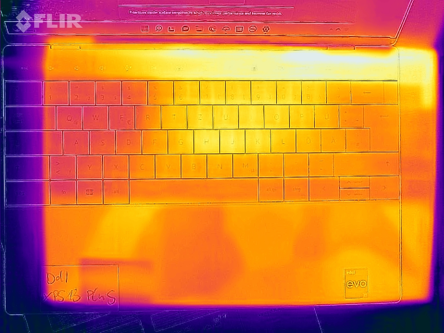 Fodralet håller en behaglig temperatur vid daglig användning. 13-tummaren kan utan problem placeras i knät när du är på språng. Men särskilt botten och det övre tangentbordsområdet värms upp vid tung, kontinuerlig belastning eller vid spelande. Botten når nära 57 °C (~135 °F) vid vissa tillfällen. Vi tror att en plan yta är tillrådlig för luftcirkulationen.