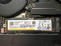 Bottenlocket är fäst med åtta Torx-skruvar (T5) och kan enkelt tas bort. De flesta komponenterna, inklusive RAM- och WLAN-modulerna, är dock fastlödda. Trots detta kan fläktarna rengöras och M.2-2280 SSD kan bytas ut. Batteriet är fastskruvat och vid behov kan det också bytas ut.