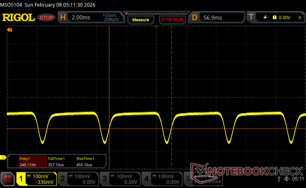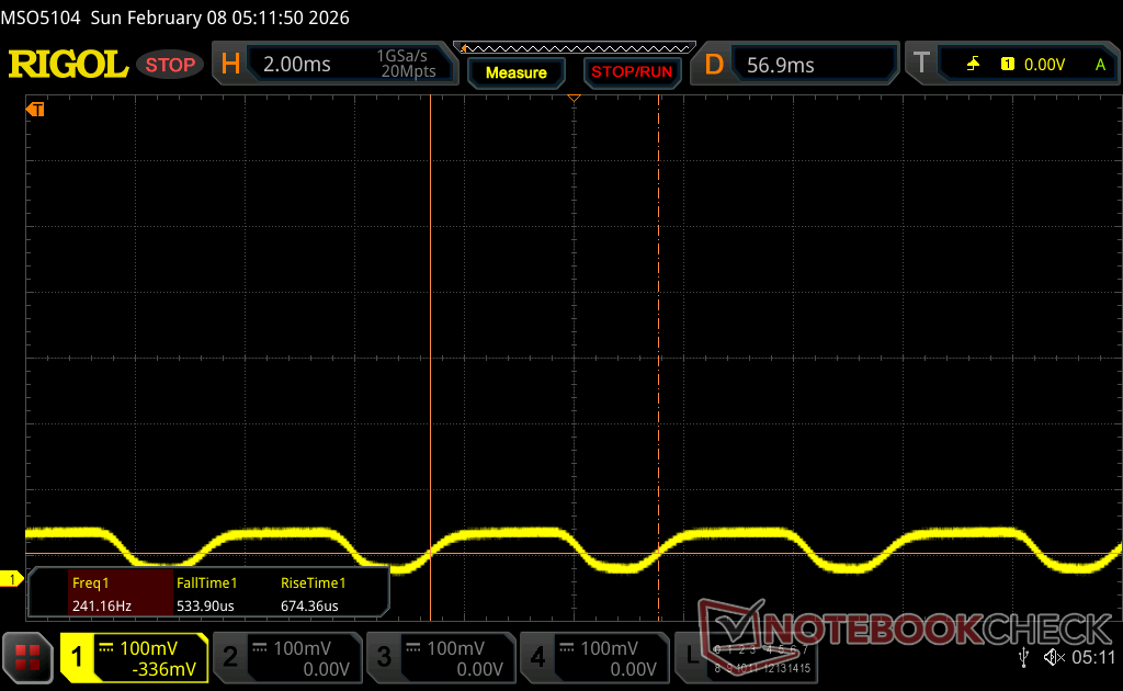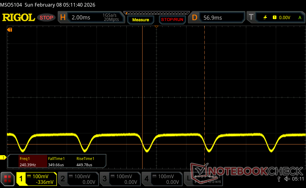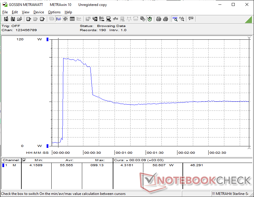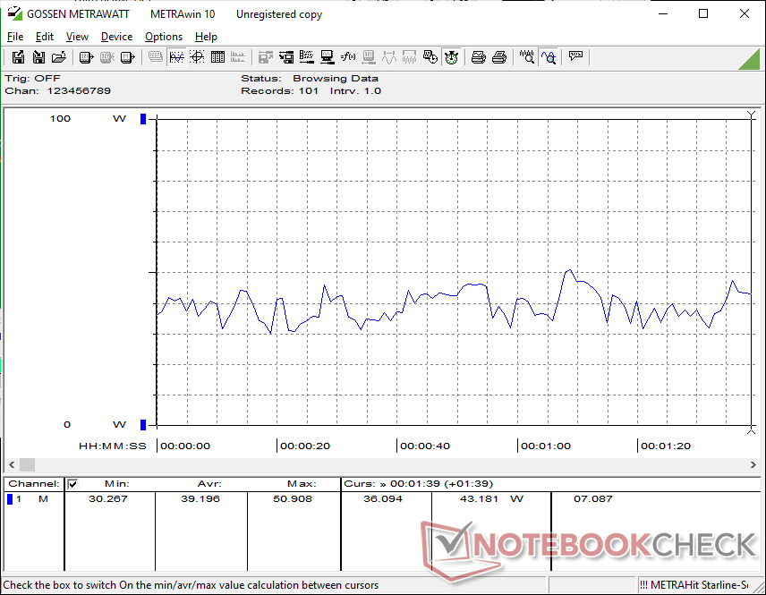WLAN-körtiden varar i nästan 17 timmar i balanserat läge, vilket är mycket nära vad vi registrerade på den likadant utrustade ExpertBook Ultra. Observera dock att Windows VRR inte aktiveras automatiskt för en fast standarduppdateringsfrekvens på 120 Hz; om du aktiverar detta manuellt skulle uppdateringsfrekvensen sjunka till bara 20 Hz när den är statisk för potentiellt längre drifttider.