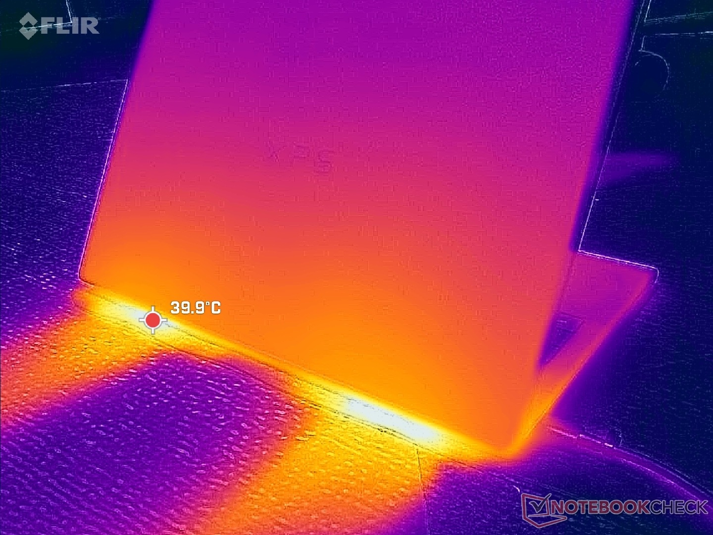 Yttemperaturerna är något varmare än vad vi registrerade på 2025 års Dell 14 Premium, särskilt på undersidan (D-locket) när vi kör mer krävande belastningar. Den heta punkten skulle nå 36 C till 39 C jämfört med 34 C på förra årets design. Skillnaderna är annars minimala och inte tillräckligt varma för att vara distraherande under användning.
