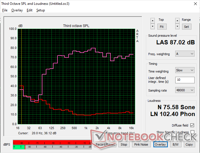 (+) | det totala ljudet är linjärt (4.6% skillnad mot median)
