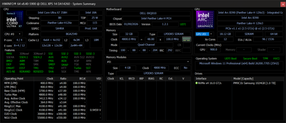 | Dell XPS 14 Core Ultra X7 358H Intel Core Ultra X7 358H ⎘ Intel Arc B390 12 Xe3 Panther Lake iGPU ⎘ 32 GB Minne, 1000 GB SSD | Amazon: Listpris: 2200 USD | 1.4 kg | 15.2 mm | 14.00" 2880x1800 243 PPI OLED | |
