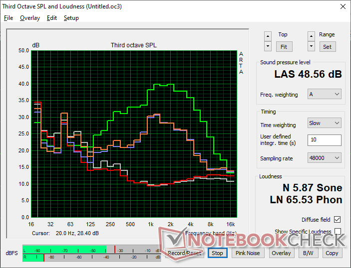 (+) | det totala ljudet är linjärt (4.6% skillnad mot median)