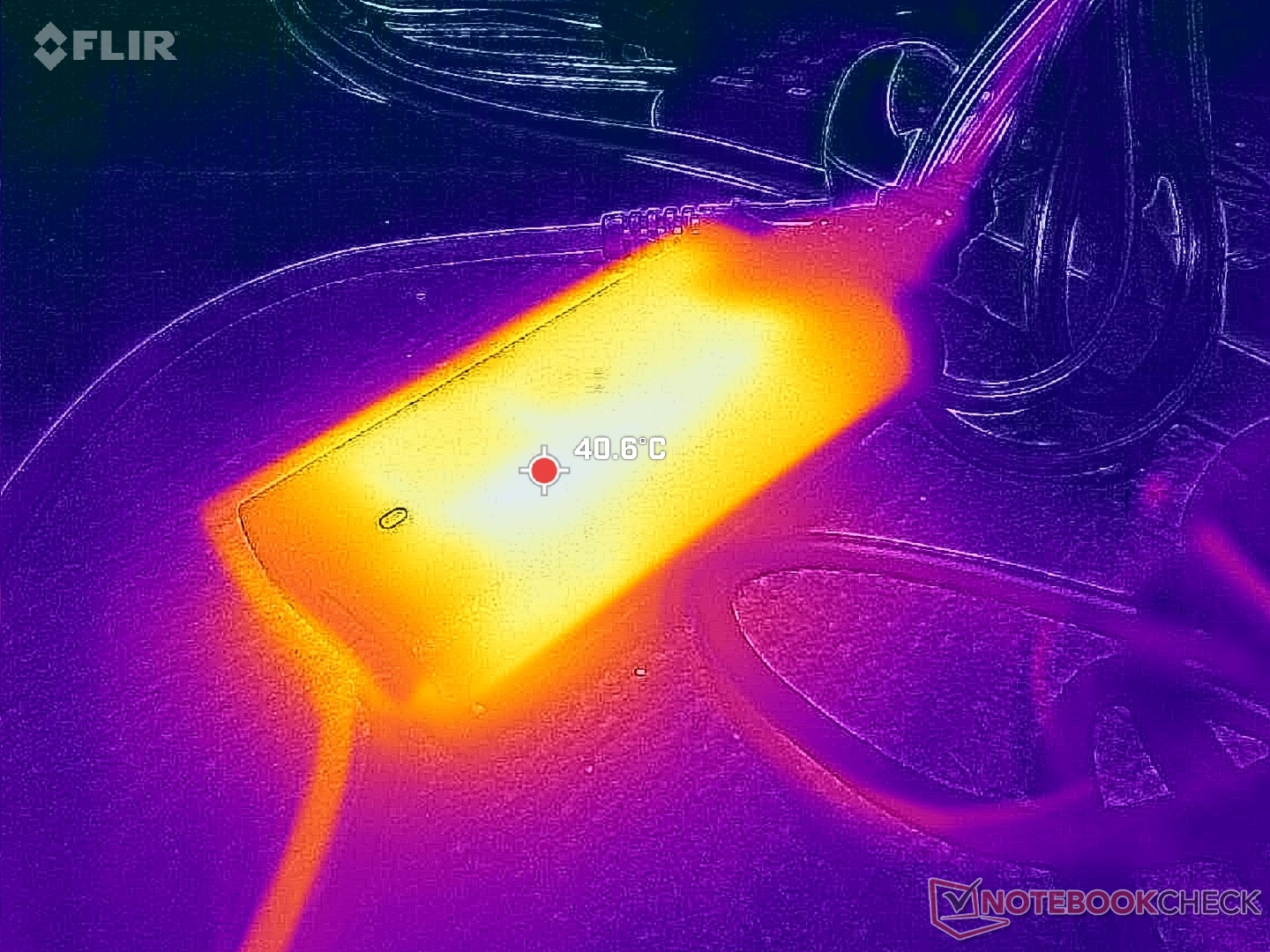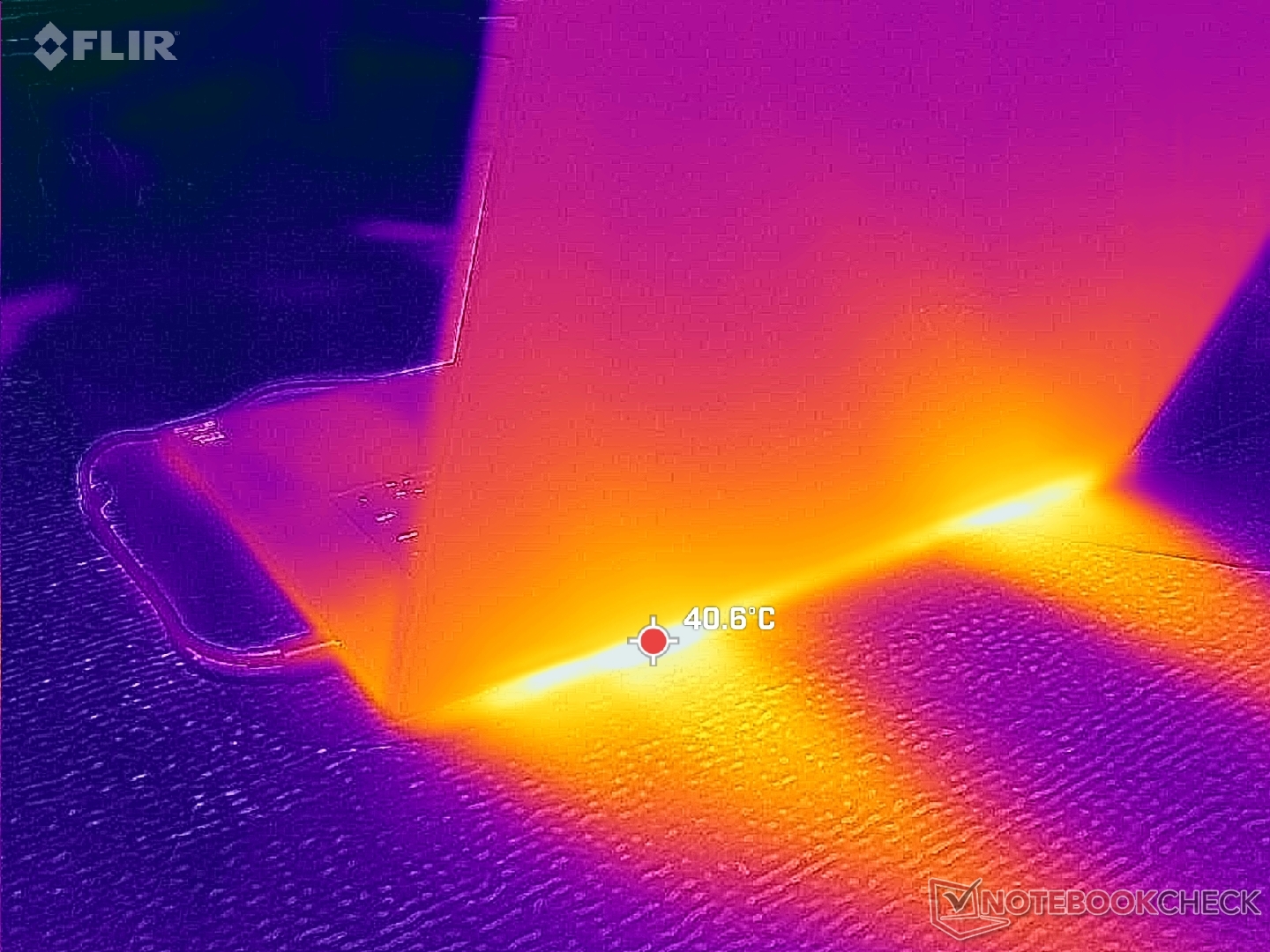 (±) Den maximala temperaturen på ovansidan är 40.6 °C / 105 F, jämfört med genomsnittet av 36.9 °C / 98 F , allt från 21 till 71 °C för klassen Multimedia.