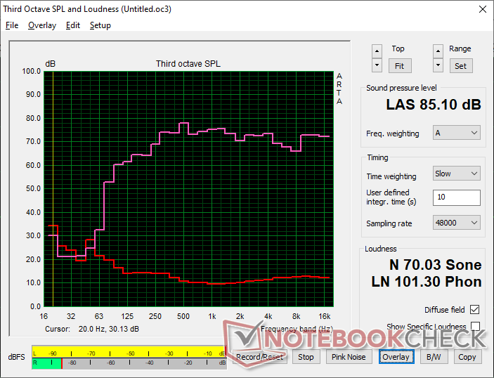 (+) | högtalare kan spela relativt högt (85.1 dB)