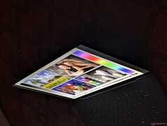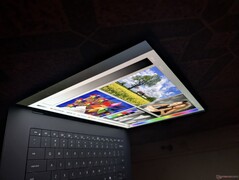Maximal ljusstyrka på OLED-panelen toppar på 400 nits i SDR-läge eller 500 nits i HDR-läge enligt våra egna interna mätningar. Således är den billigare IPS-konfigurationen faktiskt något ljusare än OLED-konfigurationen när den visar SDR-innehåll. Synligheten utomhus är därför inte nödvändigtvis bättre med det glansigare OLED-alternativet.