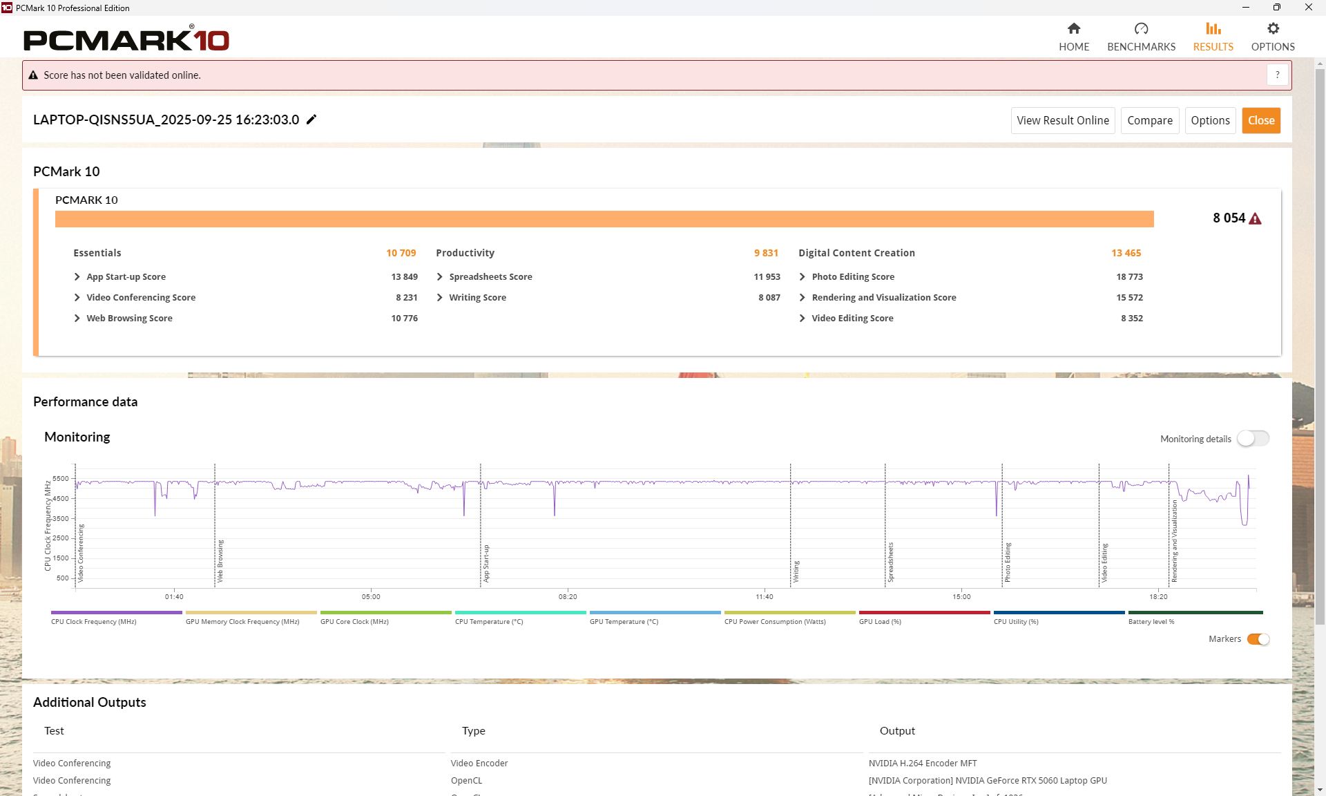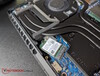 Om du ansluter en extern skärm aktiveras den dedikerade GPU:n, vilket ökar strömförbrukningen vid tomgång. Under belastning är strömförbrukningen något högre än genomsnittet. Effektivitet är inte dess styrka, men strömadaptern på 230 W är väl tilltagen.