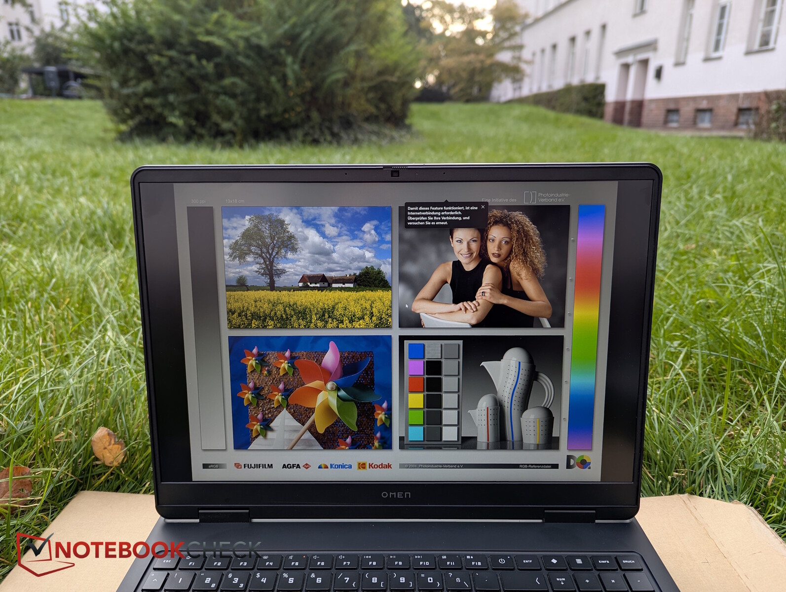 HP listar flera skärmalternativ för Omen 16-sortimentet. Vår granskningsenhet använder en av de svagaste panelerna: en 1200p IPS-skärm (300 nits, 144 Hz, 62,5% sRGB). Andra versioner sträcker sig från en 1080p 300-nit 100% sRGB-variant på Ryzen 7-konfigurationer upp till en 1600p 500-nit 240 Hz 100% sRGB-panel för Ryzen AI eller Intel Core Ultra-modeller.