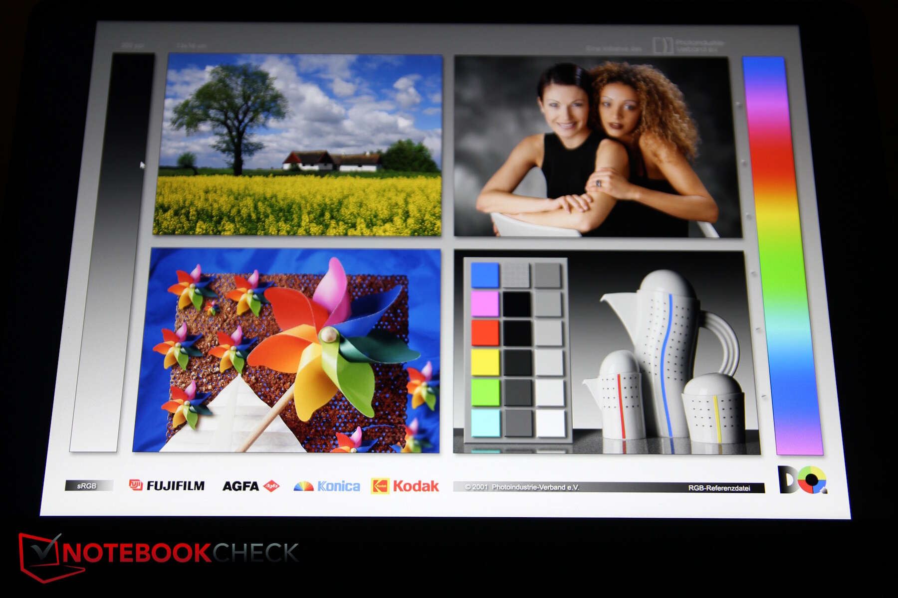 Våra mätningar bekräftade ljusstyrkan på 300 nit och den solida enhetligheten, även om vi noterade en liten ljusfläck längst ned till höger. Kontrasten är bra, men färgtäckningen är dålig - under 60% sRGB, vilket även andra bärbara budgetdatorer nu lyckas överträffa.