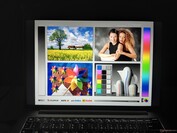 Kvaliteten på aluminiumchassit är över all kritik. Det böjer eller vrider sig inte lätt, och särskilt basen har ingen eftergivenhet alls. Naturligtvis tenderar aluminium att bucklas lättare än magnesium eller plast, men den haptiska känslan av metallen är utsökt. Dessutom visar silveraluminiumet inga fingeravtryck alls. Vi har bara en liten kritik när det gäller chassit: Skärmen går inte att öppna med en hand, och den har en liten skakighet.