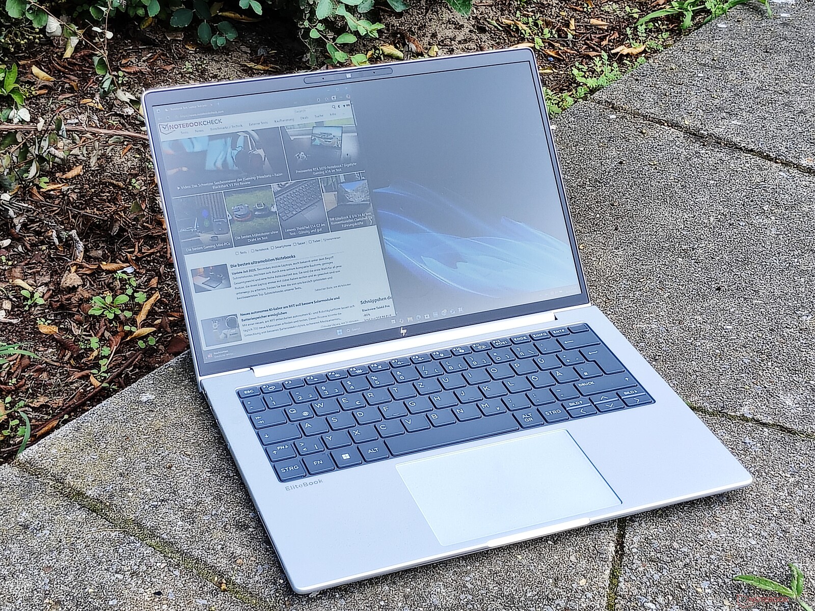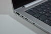 Jämfört med den äldre HP EliteBook 845 G11har HP helt förnyat chassidesignen på den nya HP EliteBook 8 G1a 14. HP behåller det grundläggande färgschemat med silverfärgad aluminium och en svart plastram runt skärmen, men det finns några betydande förändringar: De främre hörnen är mer rundade, tangentbordet är nu grått istället för svart och gångjärnen tillåter nu bara en öppningsvinkel på cirka 170 istället för 180 grader. Dessutom har HP lagt till en liten fördjupning framför pekplattan, vilket gör det lättare att öppna den.