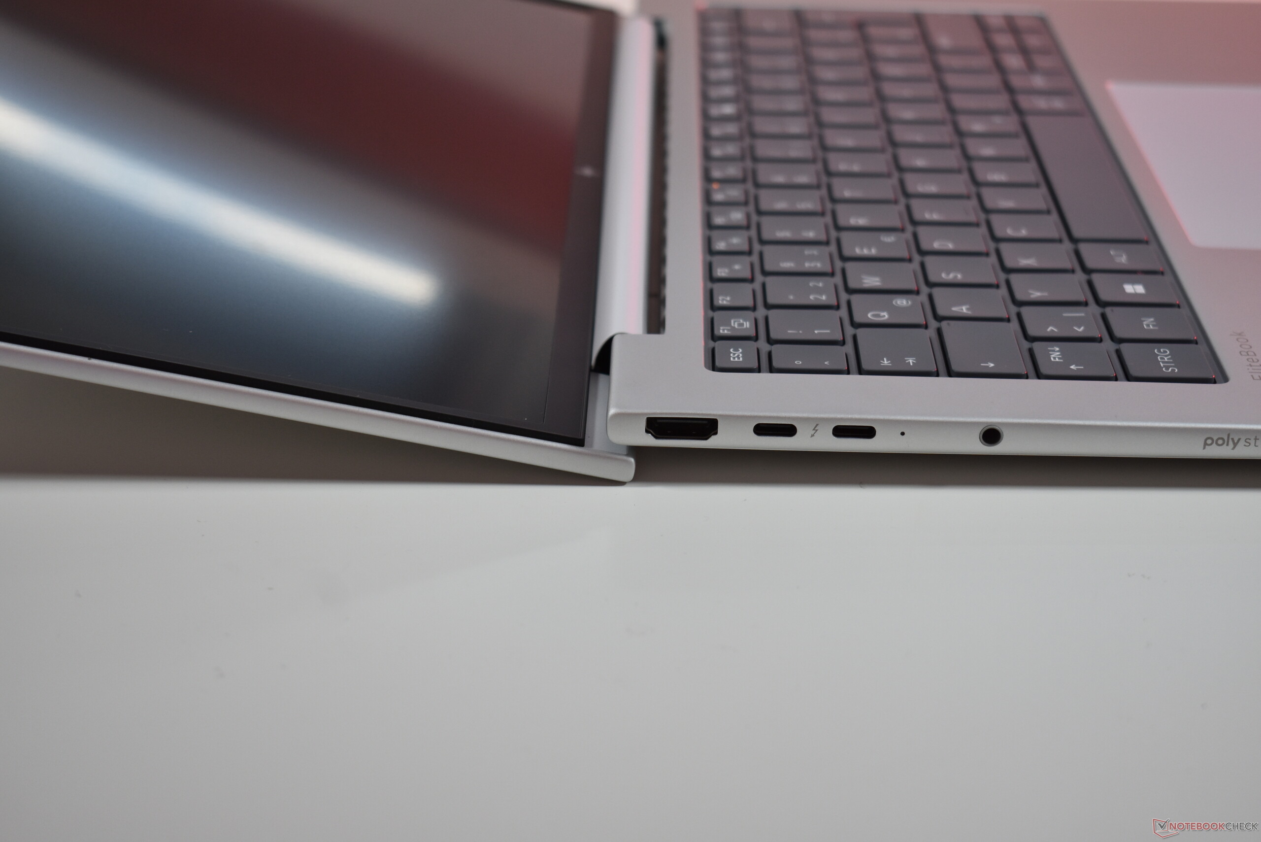 HP har noggrant moderniserat portvalet i sin EliteBook-serie genom att ersätta en av USB-A-portarna med en annan USB-C. Fördel: Nu är det möjligt att ladda enheten från båda sidor. Den nya USB-C-porten på höger sida ger dock inte riktigt samma möjligheter som den på vänster sida, eftersom den saknar Thunderbolt 4-funktion.