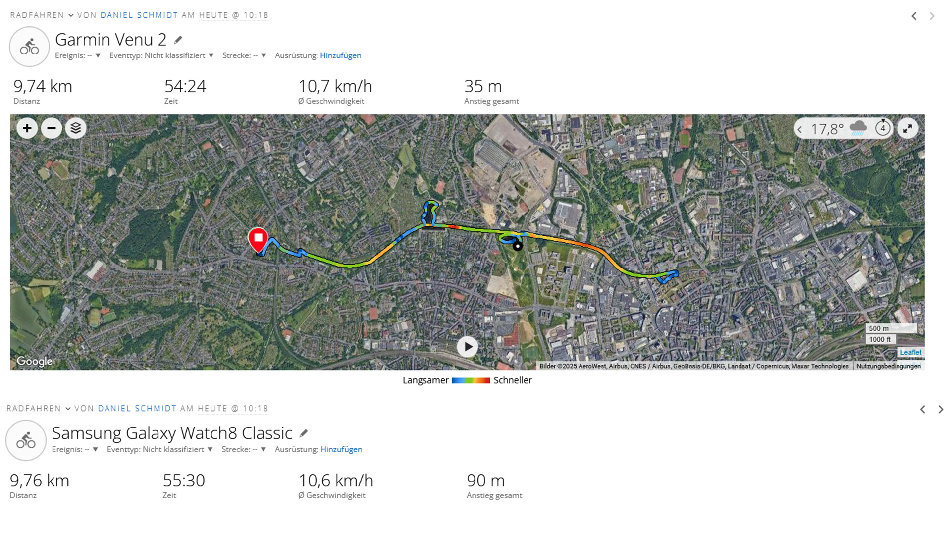 För att bättre kunna utvärdera mätnoggrannheten jämförde vi Galaxy Watch8 Classic med flera referensenheter. I allmänhet är det svårt att fastställa absolut noggrannhet, vilket framgår av vår Bakgrundsrapport.