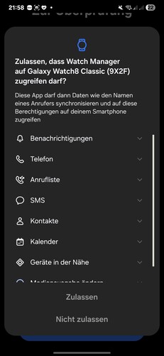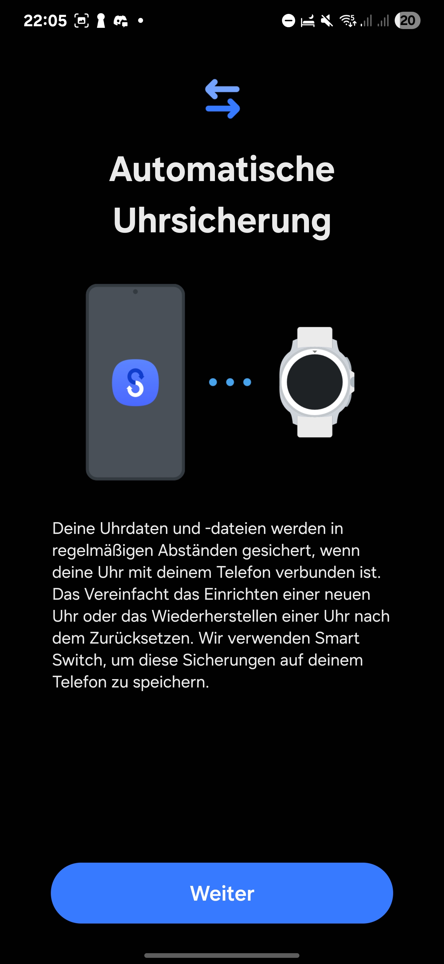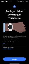 När Galaxy Watch8 Classic slås på första gången upptäcks den automatiskt av Android smartphones. Installationen sker via Samsung Wear-appen, som kräver en extra plugin för klockan. Ett Google-konto är obligatoriskt och ett flertal behörigheter måste beviljas under installationen.