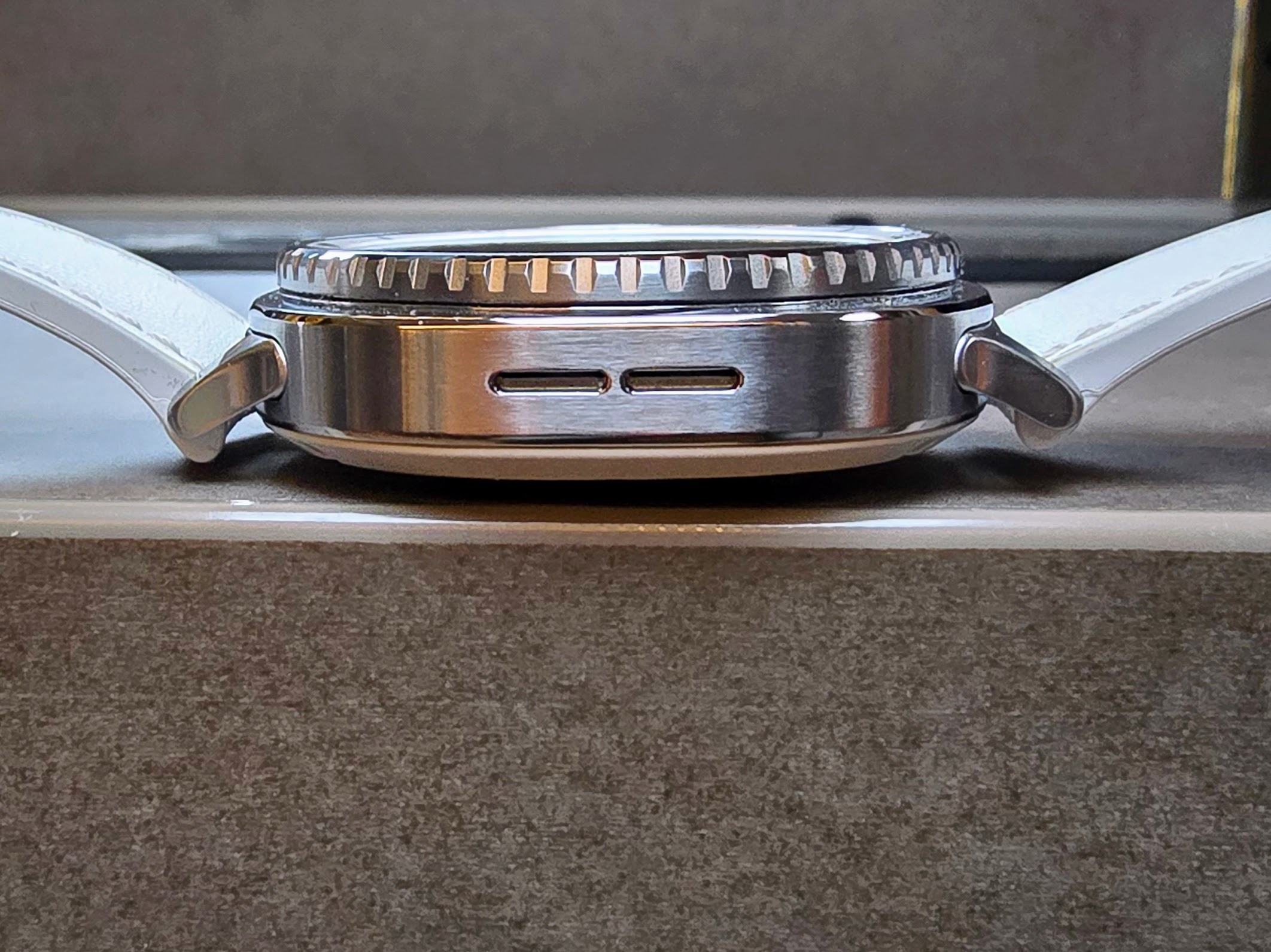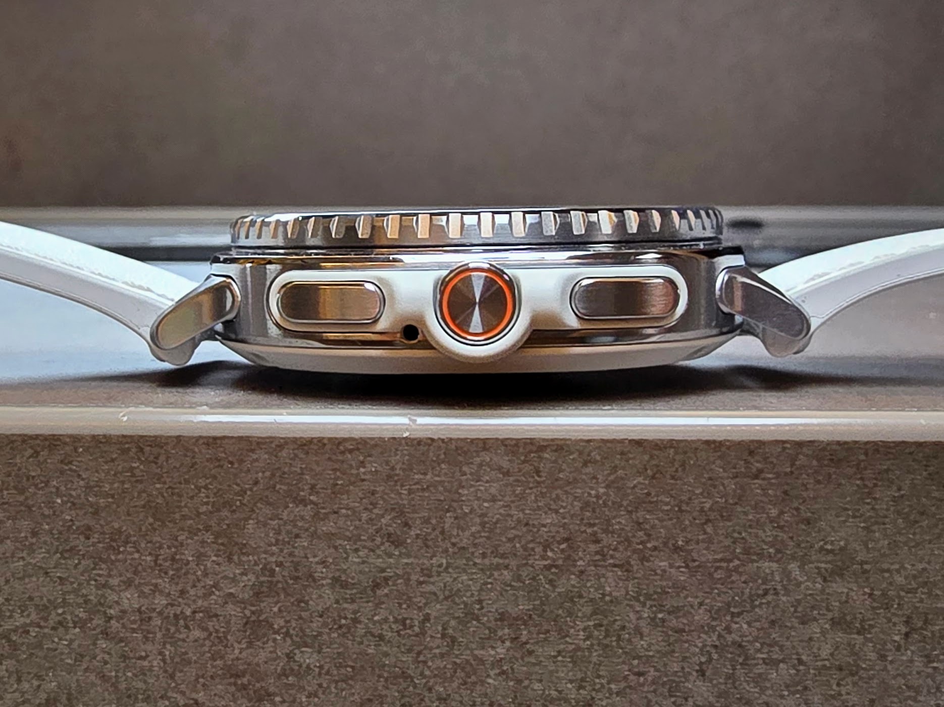 Visuellt har Galaxy Watch8 Classic hämtat inspiration från Watch Ultra och kombinerar både runda och fyrkantiga designelement. Den har också ärvt Ultras extra "Quick Button" Den roterande boetten är fortfarande ett utmärkande drag hos Classic. Sammantaget ser Classic märkbart mer skrymmande ut än standardmodellen Klocka8.