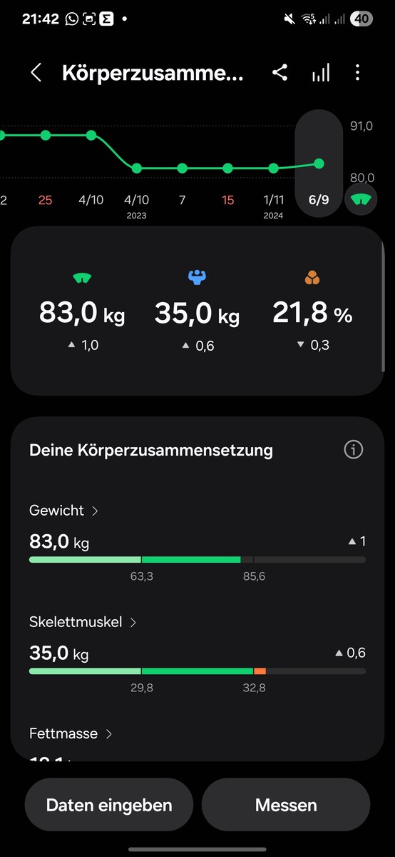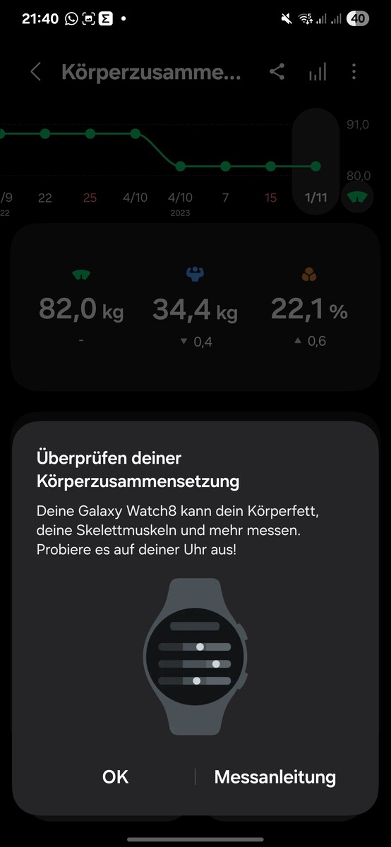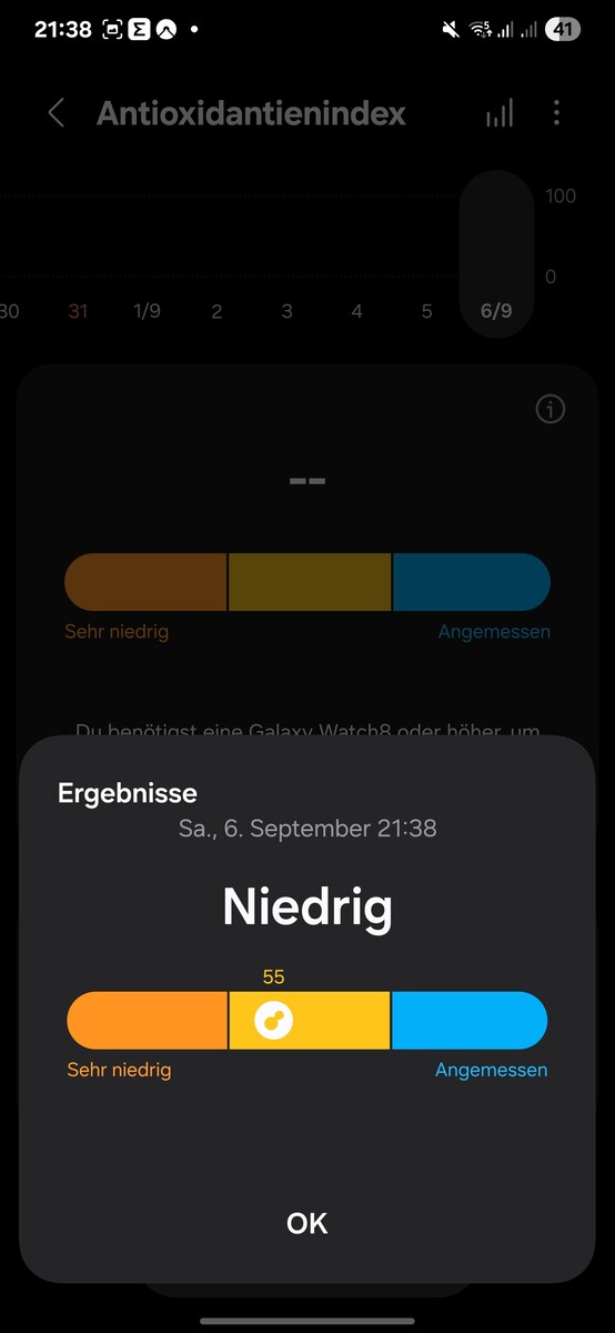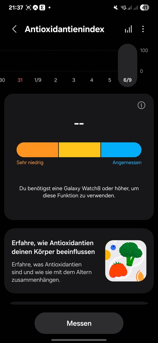 Blodtrycket kan också mätas med Galaxy Watch8 Classic, men först efter kalibrering med en extern enhet. I det här fallet använde vi Braun ExactFit 5 Connect som referens. Den genomsnittliga avvikelsen från tre mätningar var 0,29% för det systoliska värdet och 3,65% för det diastoliska värdet, med en maximal avvikelse på 3 mmHg i ett test.