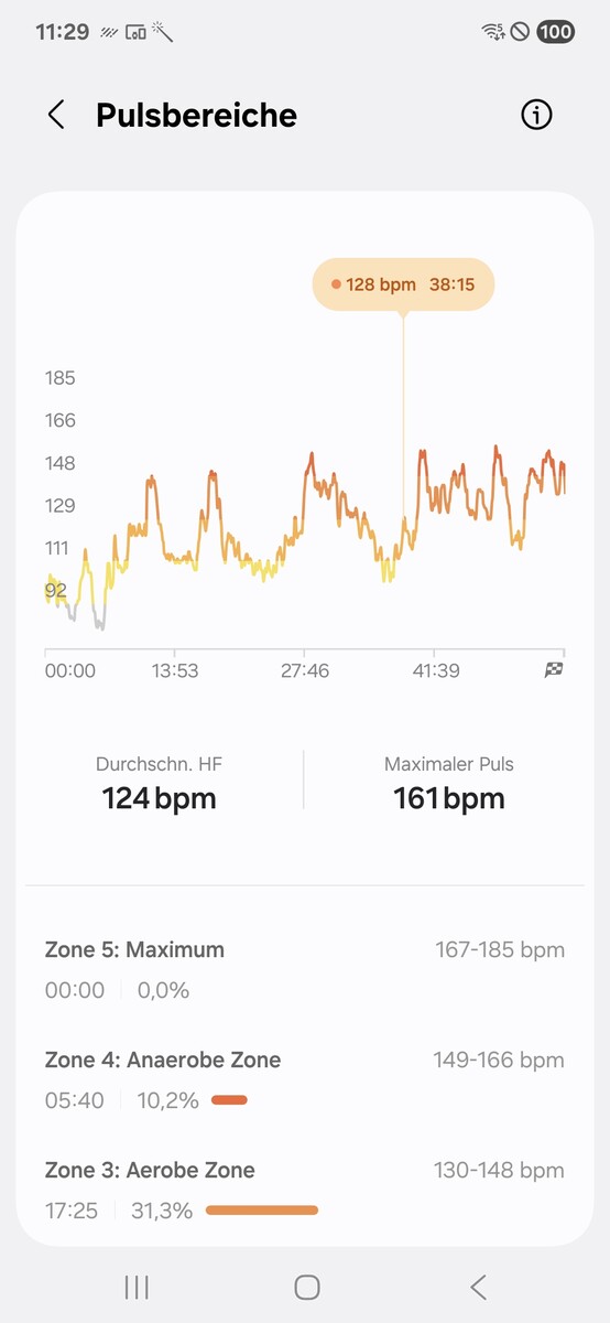 För pulsmätning använde vi ett Polar H10 bröstband som referensenhet. Båda enheterna registrerade identiska vilopulser, med en genomsnittlig avvikelse på 2,37% över tre mätningar. Den maximala avvikelsen i ett enda test var 7 slag per minut.