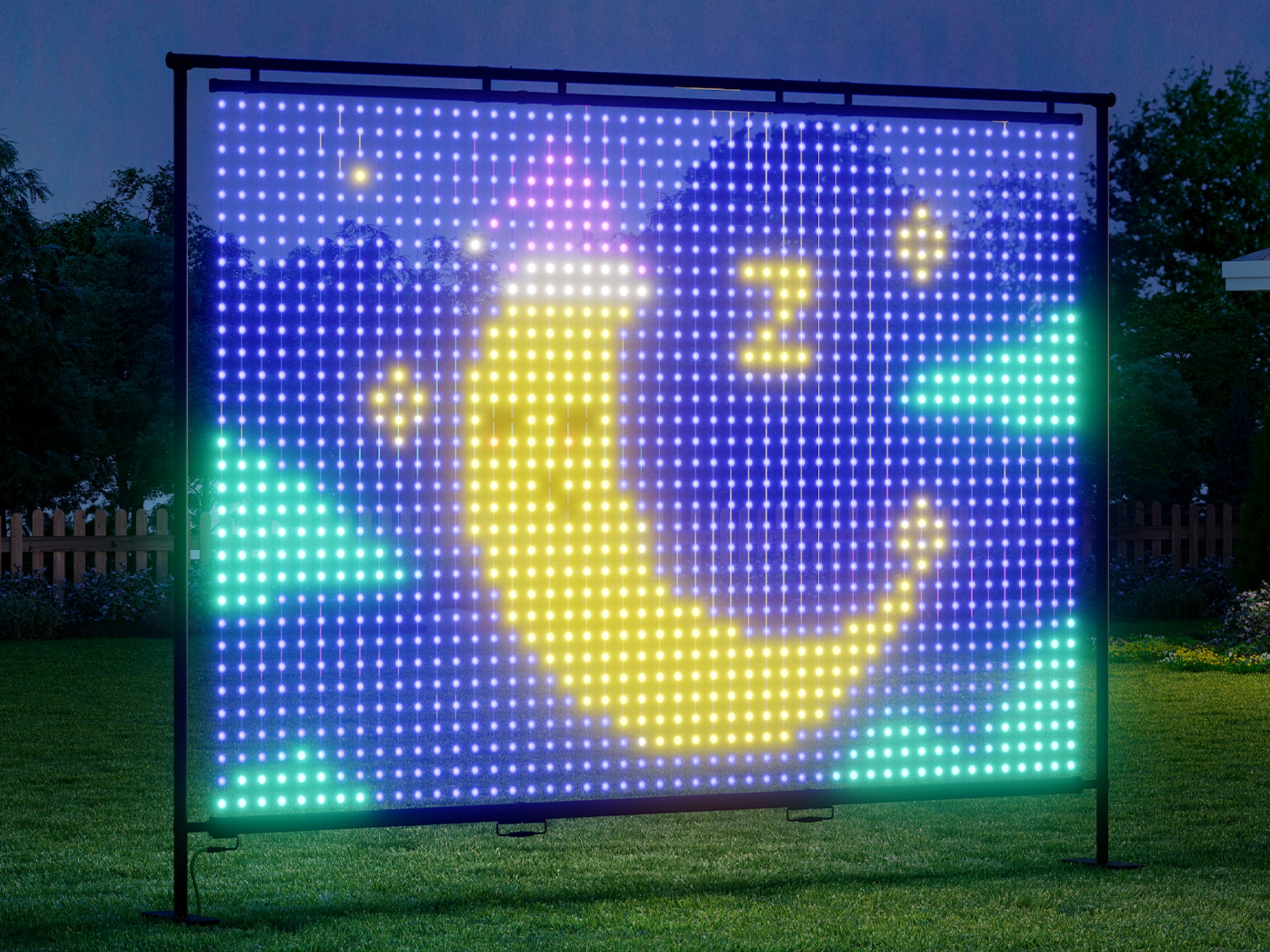 Govee Lightwall packar 1 536 RGBIC-lysdioder i ett exakt 32 × 48 pixelrutnät och uppnår en pixelavstånd på bara 1,96 tum - den högsta densiteten i sin klass. Resultatet är exceptionellt skarpa bilder med sömlösa färggradienter, oavsett om du visar en komplett scen från hela gården eller avslöjar invecklade detaljer på nära håll. Med en bildhastighet på 35 FPS i biokvalitet blir de dynamiska effekterna flytande och fördröjningsfria, vilket ger liv åt komplexa animationer med mjuka, naturliga rörelser.