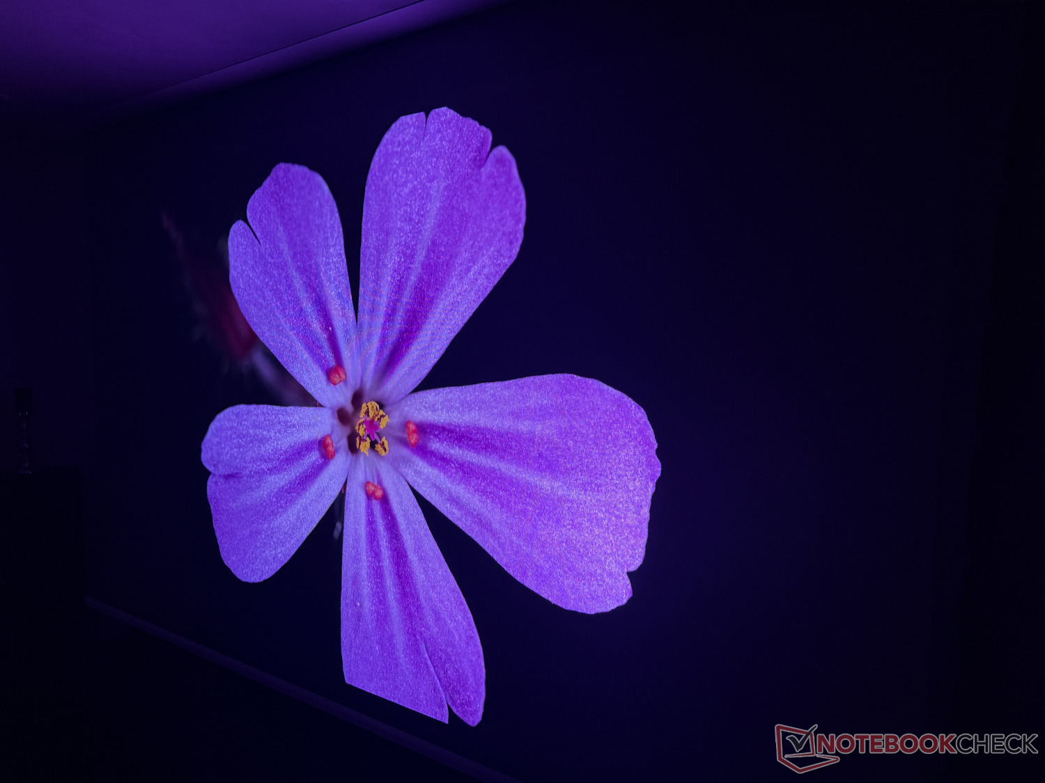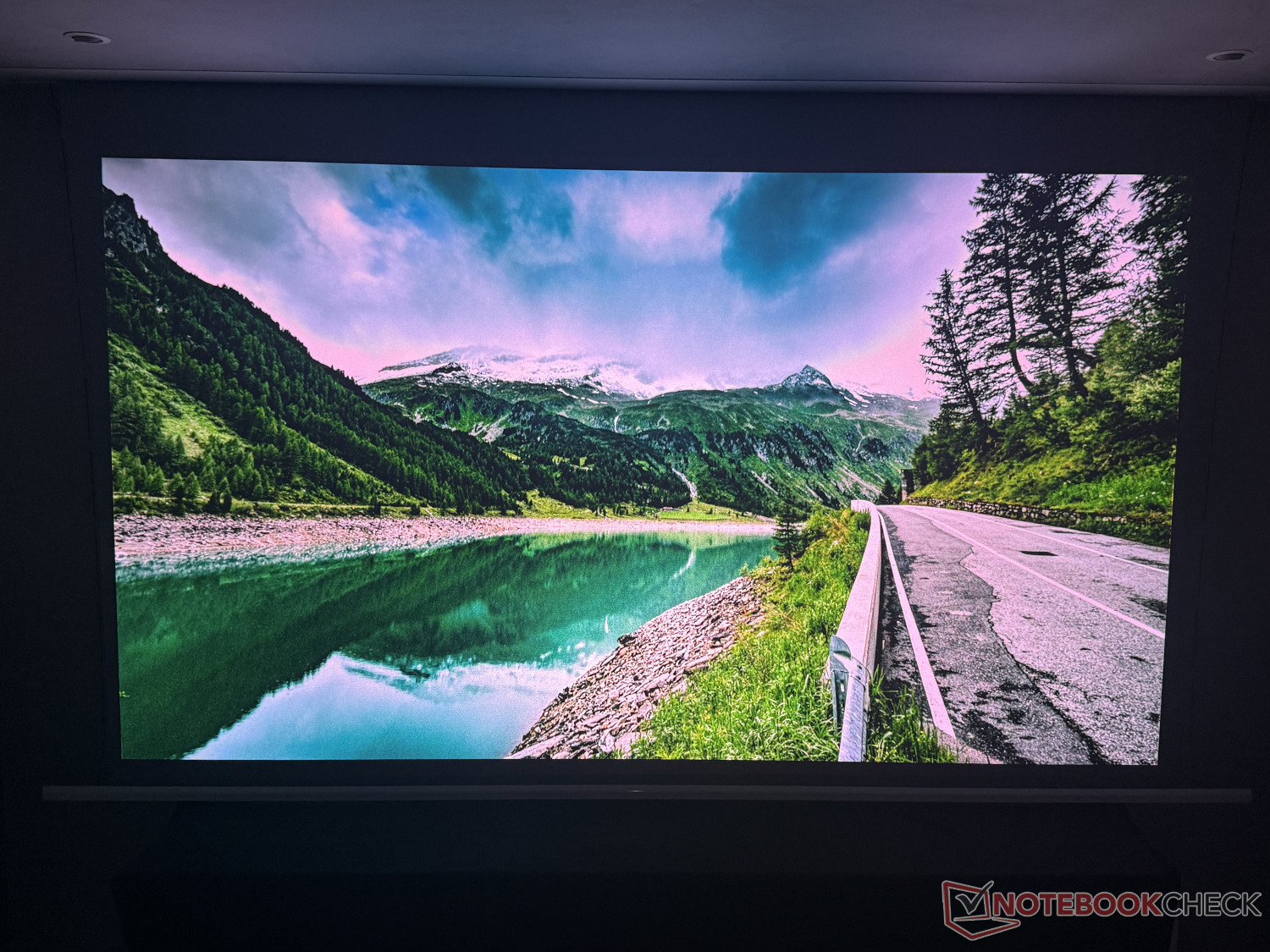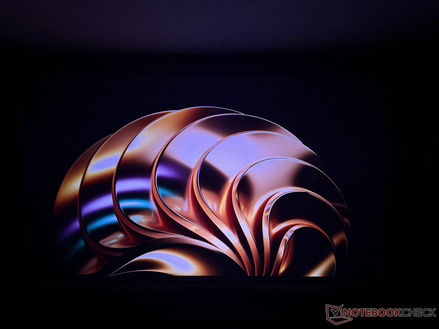 Bilden är ännu mer imponerande i ett mörkt rum. Med sitt NoirScene-system, EBL-algoritmen (Enhanced Black Level) och de svartbelagda bladen i 6-stegs IRIS levererar Valerion VisionMaster Max en rik och djup svärta i testet som många projektorer inte kan matcha. Det finns liten eller ingen synlig övergång till den obelysta duken när bildens kant är svart.