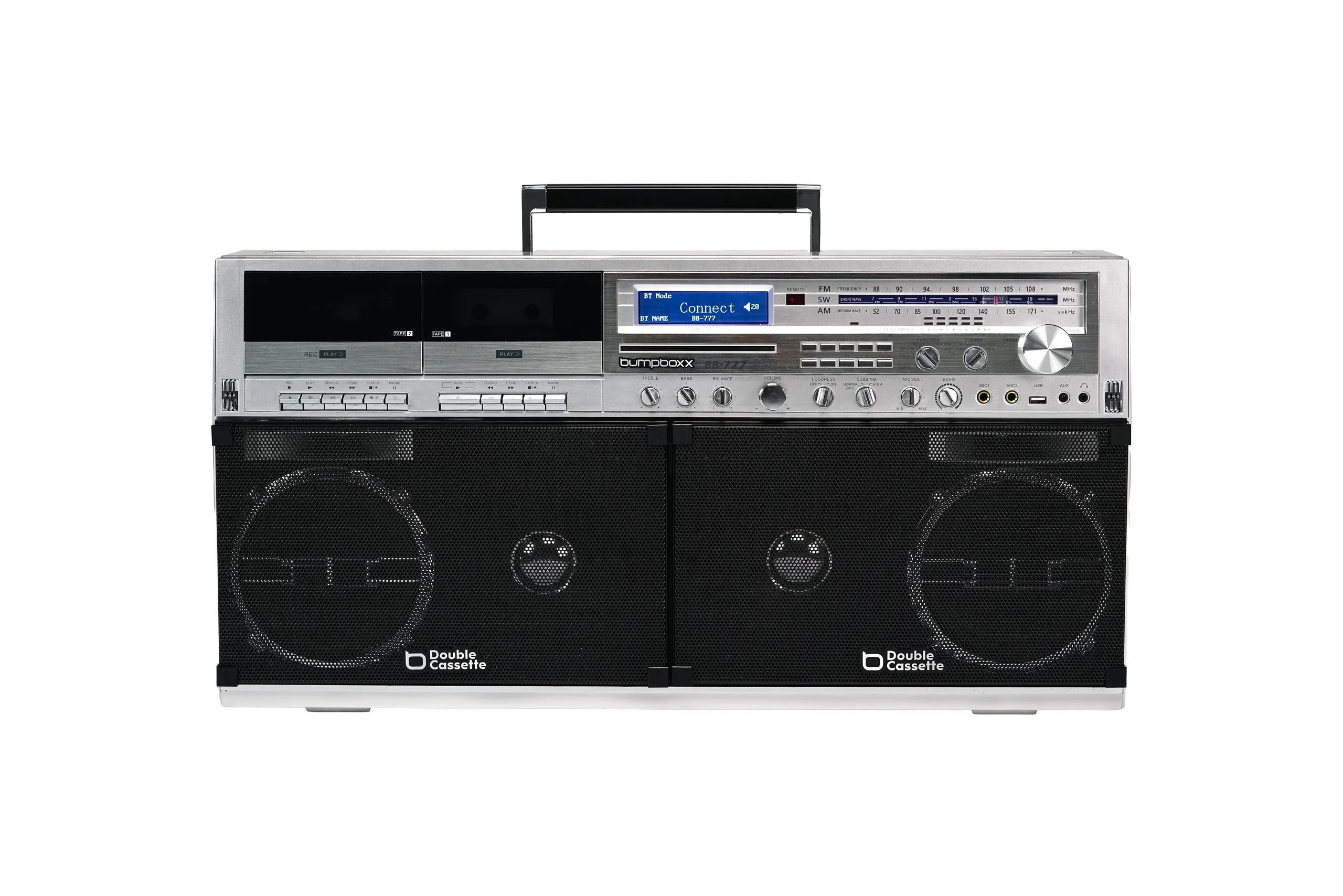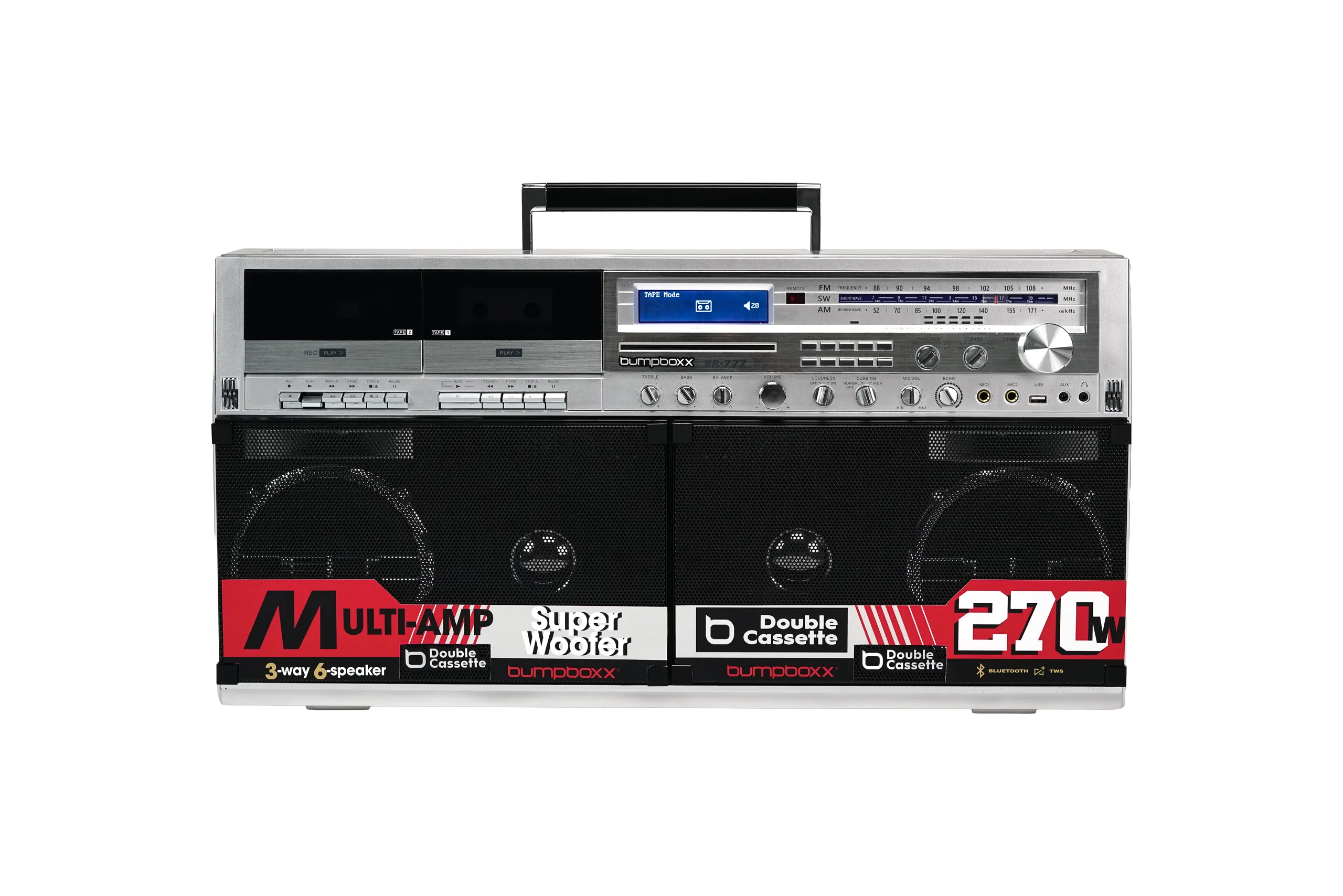 LOS ANGELES, CA - Bumpboxx tillkännager stolt lanseringen av BB-777, en kraftfull bärbar boombox som förenar klassiska analoga format med modern digital prestanda i ett helt integrerat ljudsystem. BB-777 levererar upp till 270 watt effekt genom en multihögtalararkitektur med dubbla superwoofers, precisionsdiskanter och ett kammat baskabinett, och ger ett djupt, rumsfyllande ljud med omisskännlig fysisk närvaro.