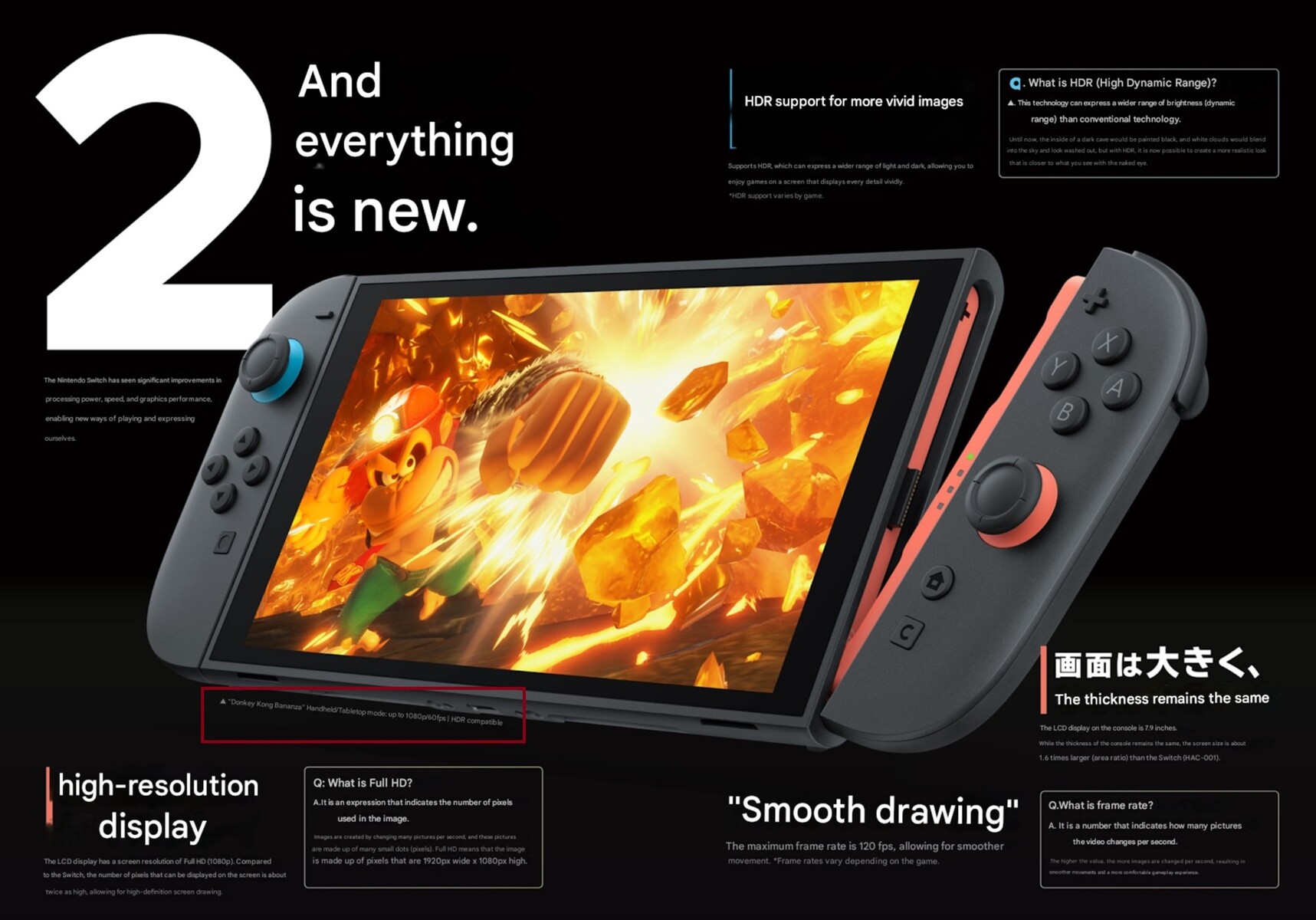 Spelare vet att uppgraderade Switch 2-specifikationer inkluderar en 7,9-tums LCD-skärm med en maximal 1080p-upplösning. HDR-stöd kompenserar också något för bristen på en OLED-skärm. Ändå, vad Switch 2-spel kommer att dra full nytta av dessa funktioner är inte klart. A Nintendo Magazine 2025 Special Edition använder Donkey Kong Bananza för att demonstrera konsolens framsteg. Under en bild ser läsarna en bekräftelse på att titeln kan köras med upp till 1080p/60 fps i handhållet läge.