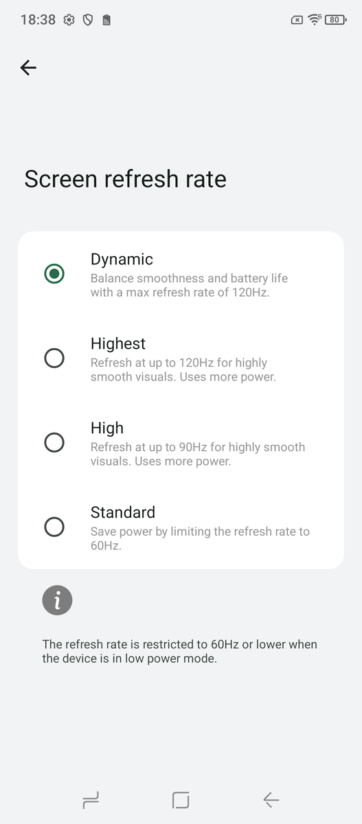 IPS-skärmen på 6,78 tum med FHD+-upplösning (2460 x 1080) är hyfsad men inte imponerande på något sätt. Den är bara inte särskilt skarp, ljusstark eller levande. Ett snabbt besök i undermenyn för utvecklarinställningar avslöjar att de flesta appar återges med en bredd på 360 pixlar, vilket ger en faktisk upplösning (viewport) på 820 x 360.