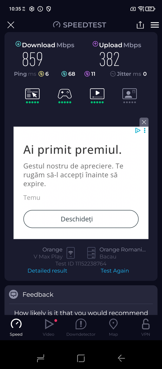 Wi-Fi 6E finns ombord och fungerar förvånansvärt bra. Nedladdning av en ~ 600-MB videofil värd på PixelDrain över Internet tog cirka 5 sekunder.