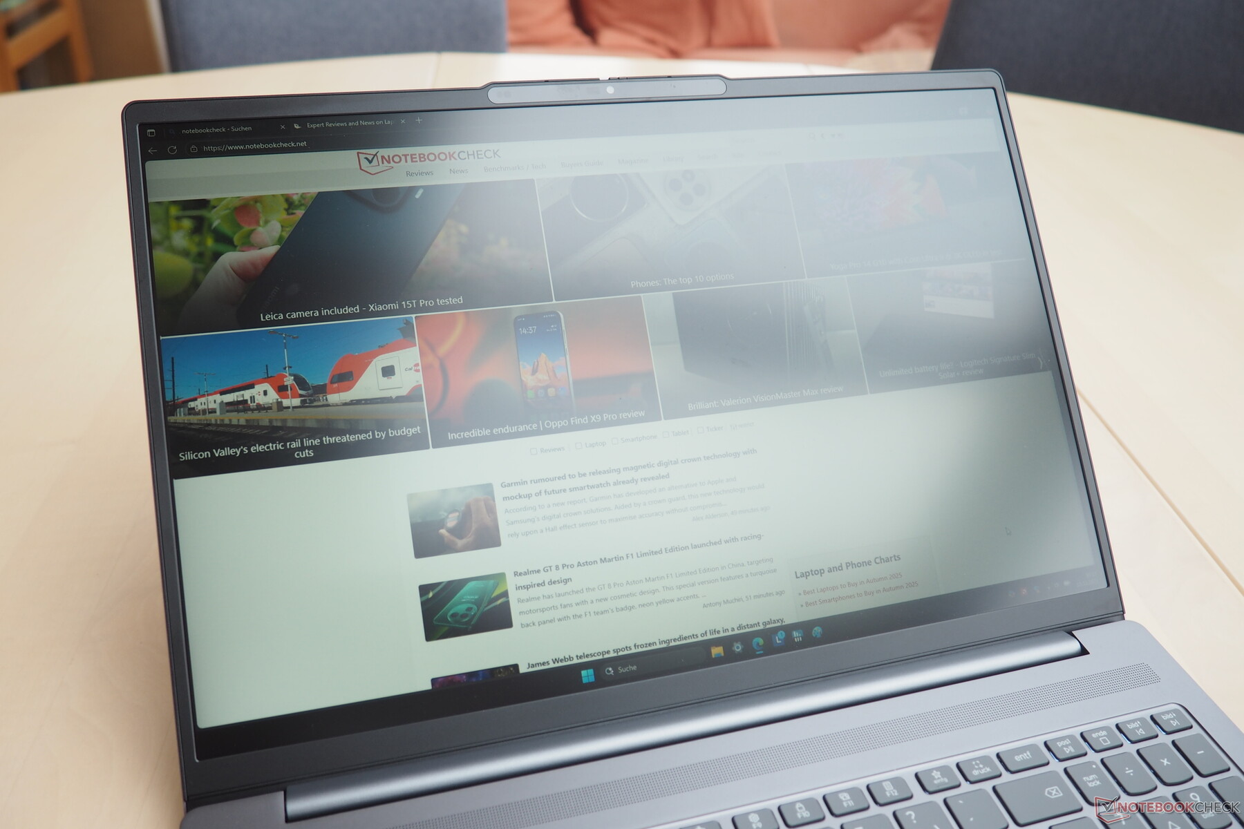 Tyvärr har Lenovo tagit några genvägar när det gäller skärmen. Den ungefär 58-procentiga sRGB-täckningen resulterar i en ganska urtvättad bild, trots det solida kontrastförhållandet på strax under 1 060:1. Här finns det definitivt utrymme för förbättringar. Svarstiderna kunde också vara bättre, som visas i vår tabell, särskilt jämfört med OLED-paneler, som också erbjuder mycket överlägsna svartnivåer. På den positiva sidan är Slim 5 16 fri från PWM-flimmer. Upplösningen på 1.920 x 1.200 pixlar är inte idealisk för en 16-tums enhet när det gäller skärpa, men fortfarande acceptabel överlag. Den genomsnittliga ljusstyrkan för vår testenhet uppgick till 332 cd/m², vilket är användbart men inte imponerande.