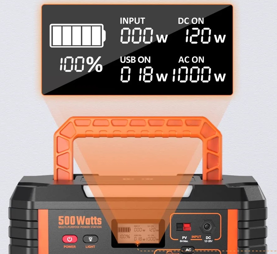 MP500 kan hantera 500 W kontinuerlig effekt, med en kortvarig toppeffekt på 1 000 W Bluetti EB3A med 268 Wh ger till och med 600 W, vilket kanske inte är optimalt för det lilla batteriet. I övrigt är den kontinuerliga effekten hos de flesta kraftstationer ungefär lika stor som deras batteristorlek.
