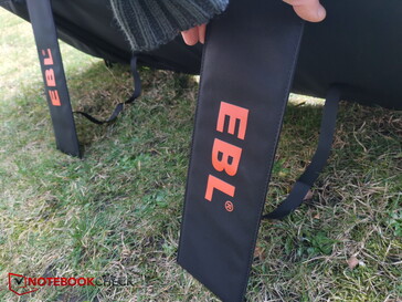 Solpanelen kan fällas ihop en gång och en magnetfäste hindrar den från att fällas upp. Vissa konkurrenter, som Anker 625 med 100 W, kan fällas ihop flera gånger och är därmed till och med lite mer kompakta. Ankers panel består till exempel av fyra segment, medan EBL-panelen bara har två. Detta gör att EBL blir cirka 12 cm längre när den är hopfälld. När den är utfälld är EBL cirka 16 cm kortare.