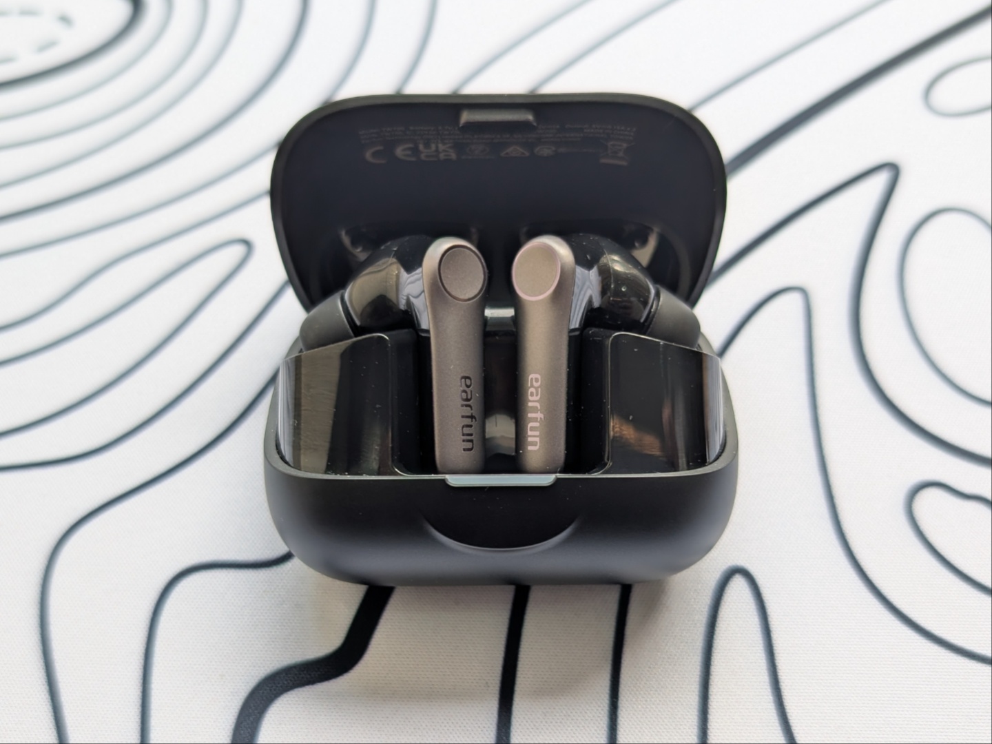 De trådlösa öronsnäckorna är vinnare av Red Dot Design Award 2025 och EarFun är stolta över den utmärkelsen, med ett märke på framsidan av förpackningen. När det gäller öronsnäckorna ser de ganska standardmässiga ut och liknar några andra in-ear-öronsnäckor med stift, som de från Soundcore och Baseus. Lådan är ganska liten vilket gör den väldigt lätt att ha i fickan, men eftersom större delen av framsidan är en del av locket är det lite svårt att öppna den med en hand. Det finns ett tillfredsställande klick när locket stängs och en stark LED-lampa för att indikera batterinivå och anslutningsstatus.