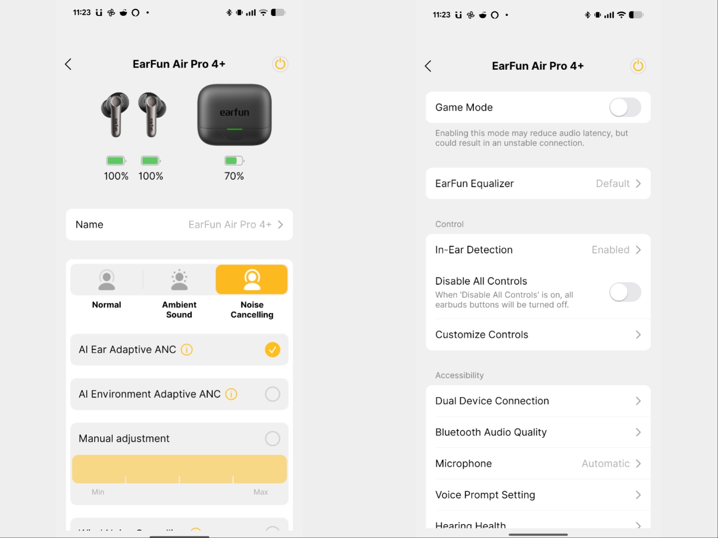 Från och med parningsupplevelsen stöder EarFun Air Pro 4+ Google Fast Pair så att du öppnar fodralet eller trycker på med knappen längst ner med fodralet öppnat visar en popup för anslutning på den närliggande Android -telefonen. Därifrån, efter parning, föreslår det att du laddar ner appen och den övergripande upplevelsen är sömlös. Vi rekommenderar att du uppdaterar till den senaste firmware omedelbart.