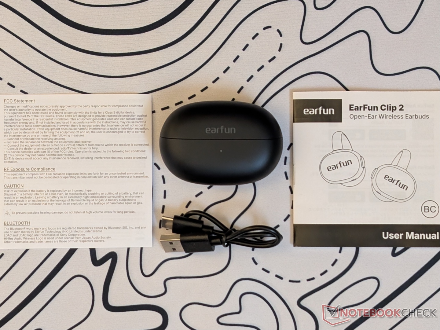 EarFun Clip 2-öronsnäckorna är enkla att packa upp och åtföljs av ett kompakt runt fodral, en USB-laddningskabel och lite dokumentation, med minimal användning av plast.