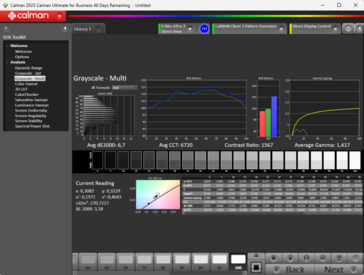 Våra mätningar bekräftade att CrowView Note har bra färgåtergivning direkt ur lådan så länge Over Drive är avstängt. I normalt bildläge nåddes sRGB-vitpunkten med inställningarna som visas ovan. (RGB 51;50;48). Dess täckning av sRGB-färgrymden är ca 100 % och Calman ColorChecker fastställde en genomsnittlig färgavvikelse på endast deltaE2000 0,72. Detta är ett värde som verkar lämpligt för professionellt arbete på enheten.