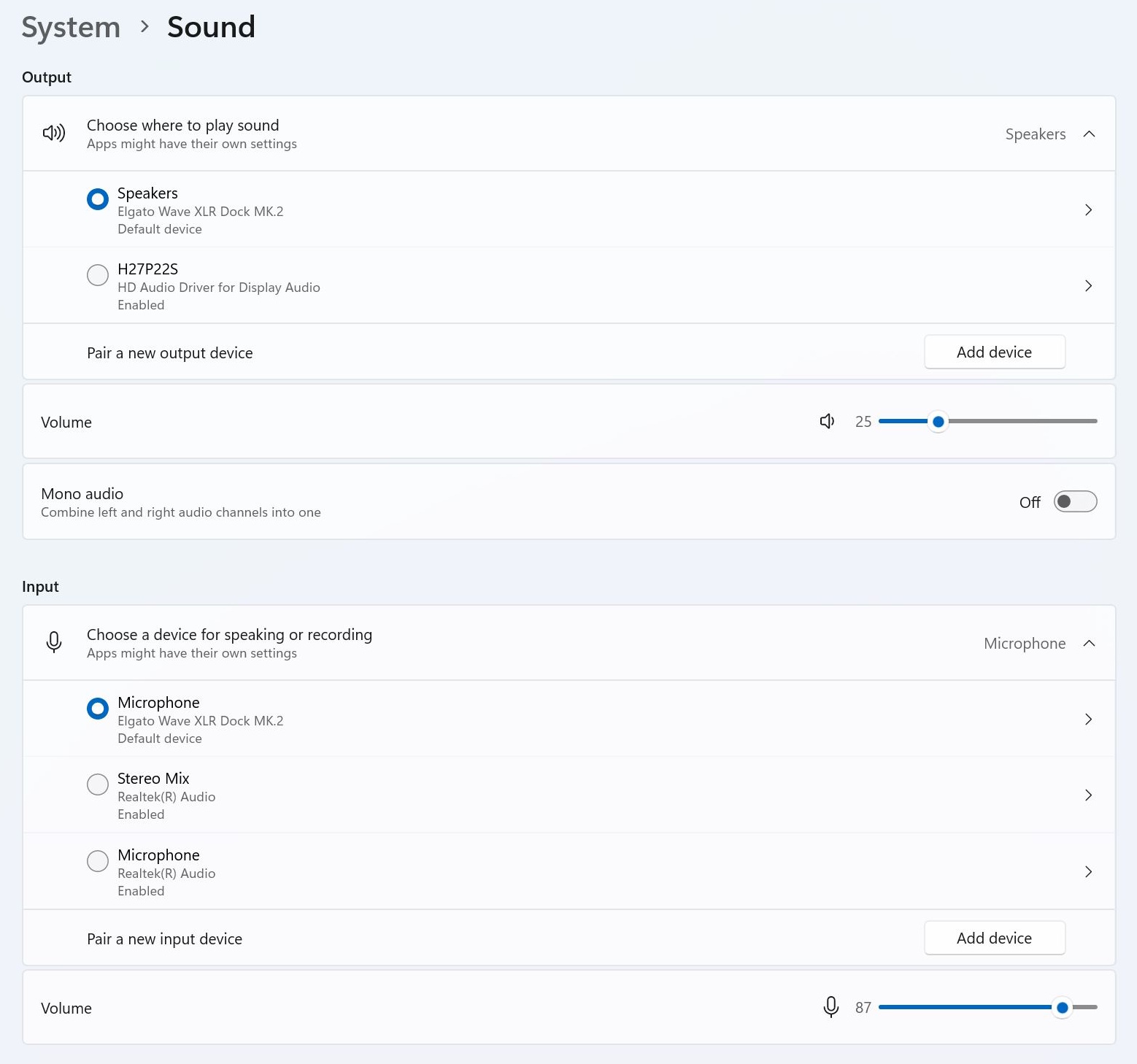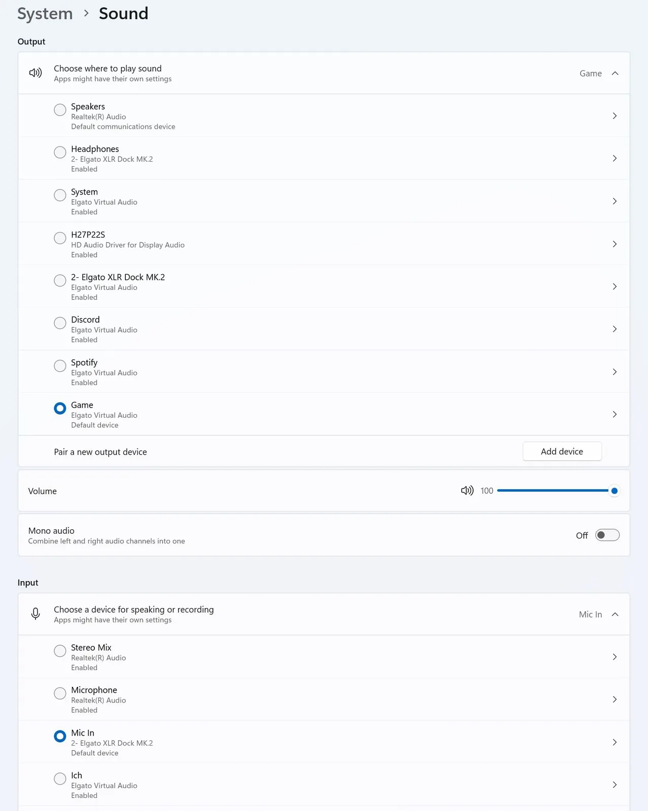 Dessa mixar visas som inmatningsenheter i systemet och kan enkelt väljas och växlas i appar som OBS. På så sätt kan du t.ex. växla mellan en mix för stream-ingång och en chattmix direkt i OBS.